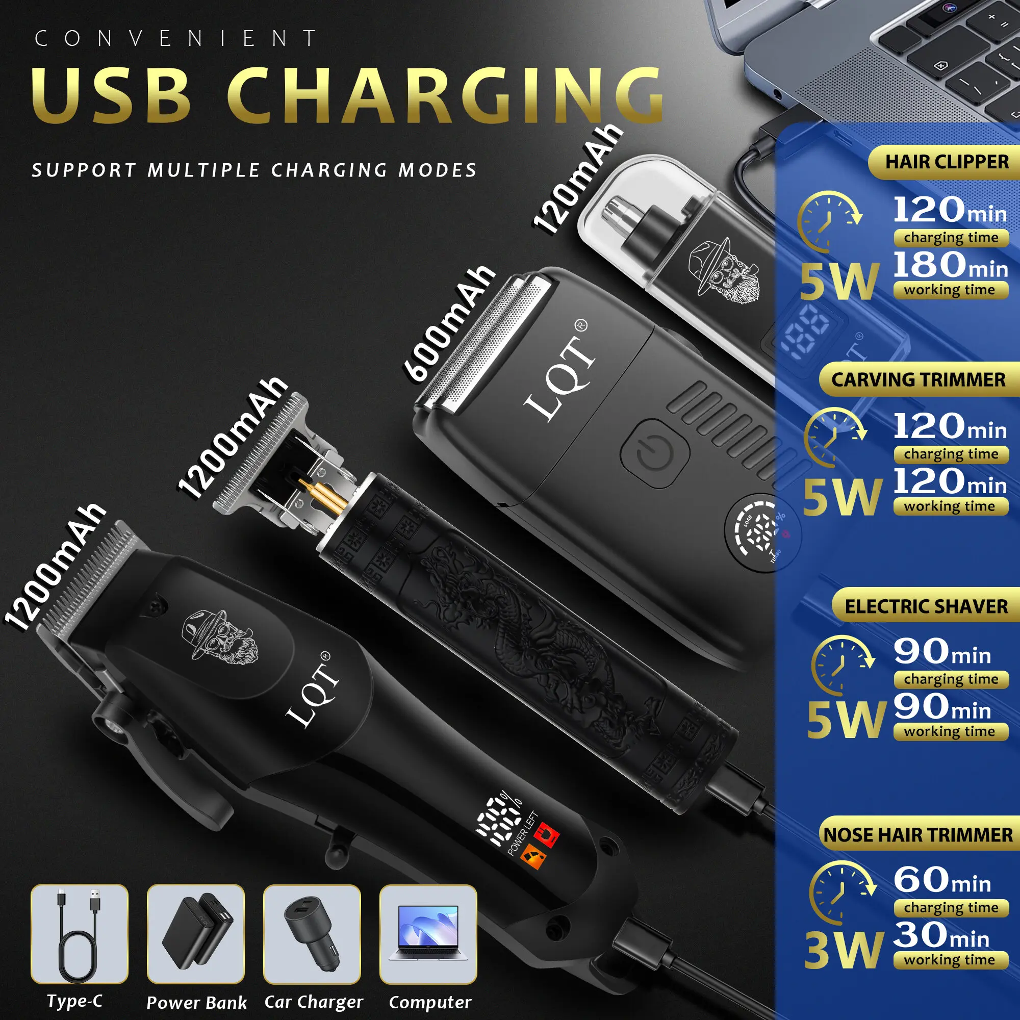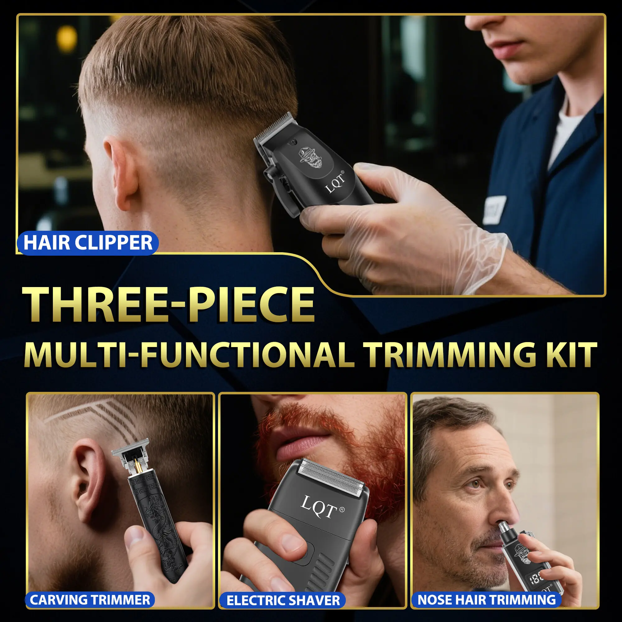 LQT Men's professional electric haircut set, Hair Clipper including a razor, Nose Trimmer suitable for family barber shops, digital display LCD screen, USB charging, Father's Day gift Free Scissors & Cape