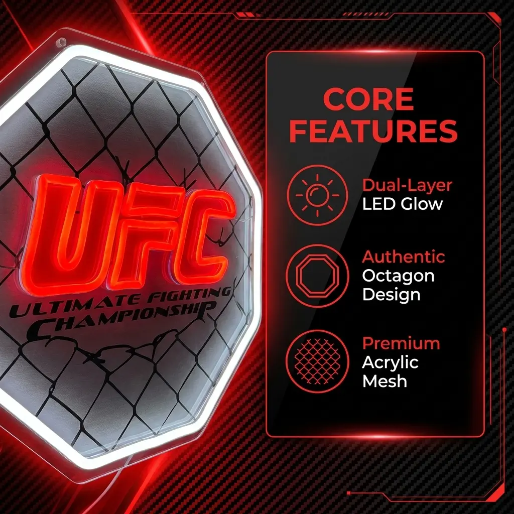 UFC Octagon Cage Neon Sign LED Wrestling Neon Sign for Gaming Bedrooms, Match Parties, Sports Fan Gifts, Wrestling Gifts, Sports Themed Lighting, Gym Decor and Man Cave (13.4"x13.4")