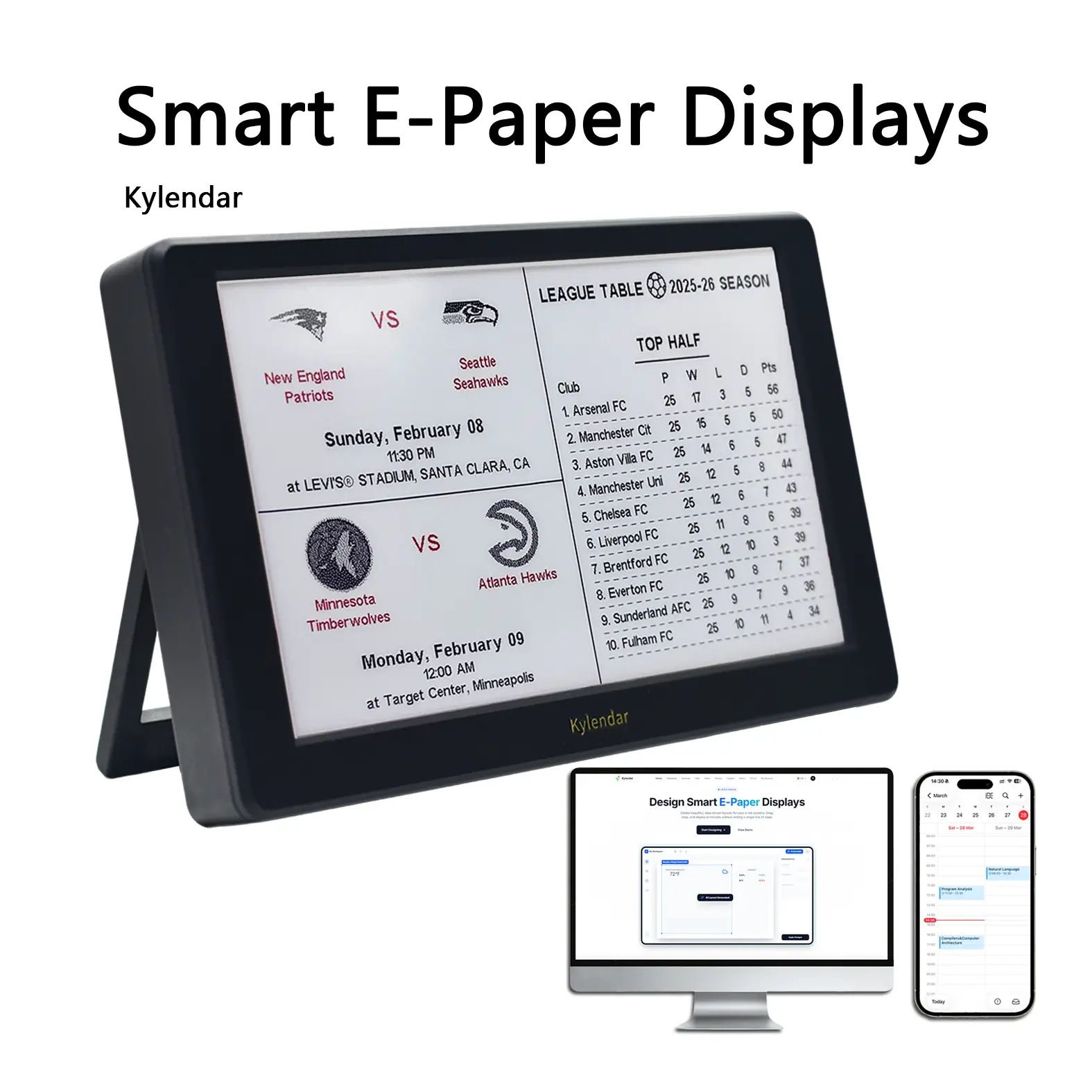 Its sleek, non-metallic casing and stable stand design ensure the Kylandar is both stylish and practical, fitting perfectly on any desk. The easy-to-use stand allows for viewing at multiple angles.