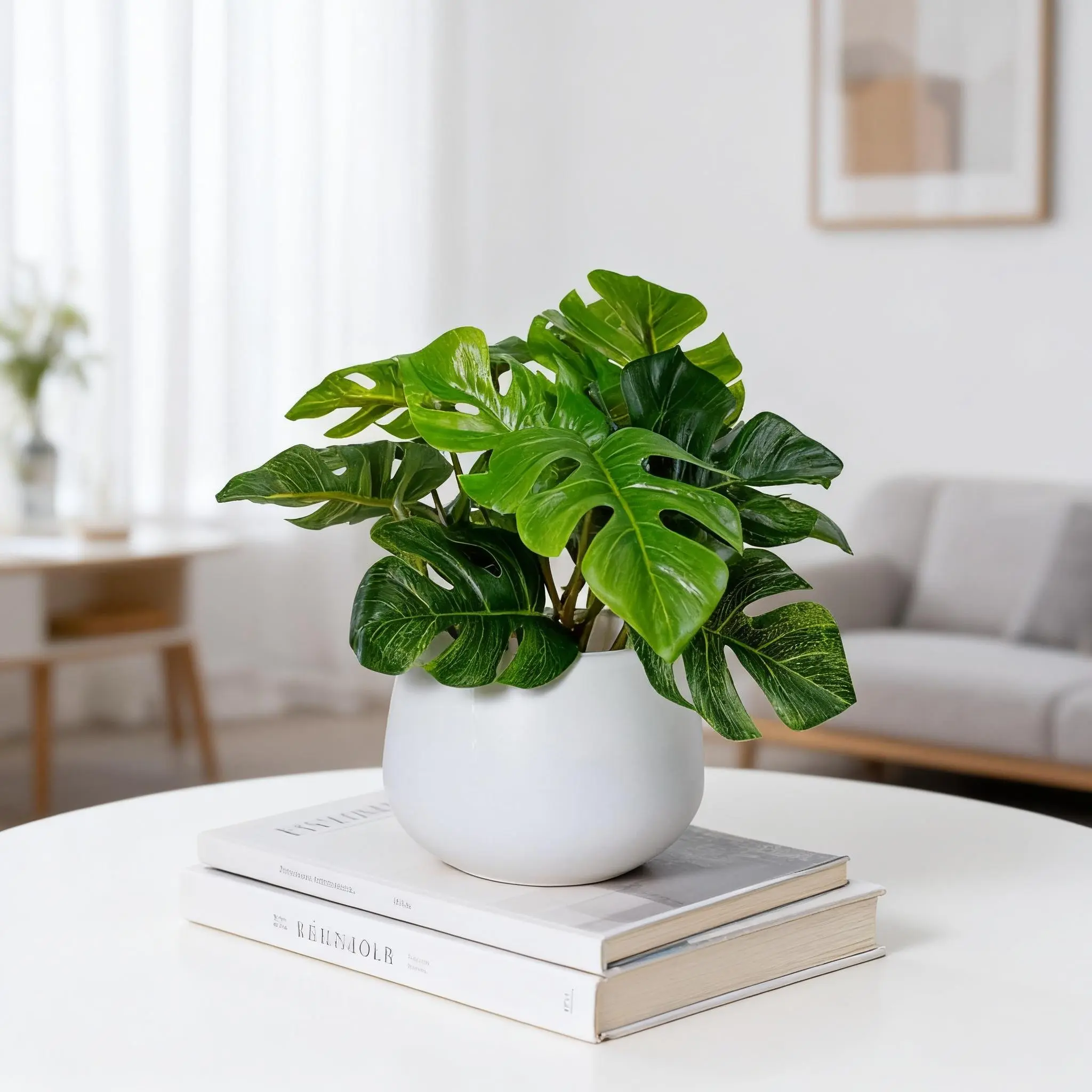 1pc Artificial Monstera Plant in A White Pot, 6-inch Potted Artificial Green Plant, Perfect for Decorating Dining Tables, Home Interiors, and Office Bookshelves. Maintenance-free—no Watering Required.
