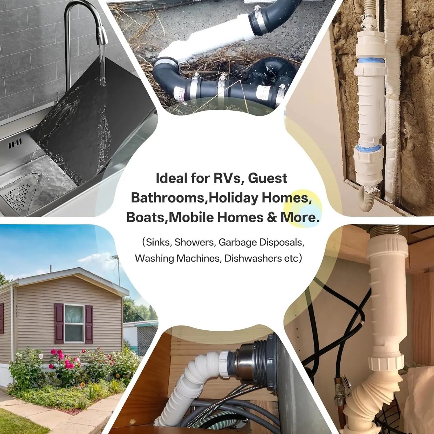 Compatibility: The waterless trap prevents foul sewer gases from entering a building and is ideal for eliminating odors in applications where fixtures are only used occasionally, such as RVs, guest bathrooms, holiday homes, boats, and mobile homes.It is compatible with kitchen sinks, showers, garbage disposals, washing machines, dishwashers, and more!The waterless trap can also be installed on discharge pipework from unvented domestic hot water systems and condensate lines from boilers and air conditioning units.It also allows the admittance of air into the waste system and can replace the need for AAV's in branch ventilation.