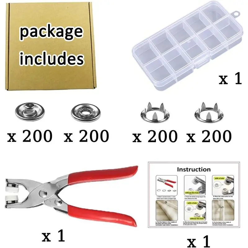 Ideal for no-sew and seamless stitching, this kit is perfect for creative crafts. The 100pcs invisible colored metal buckles add a unique flair to your projects. The manual pressure pliers are a handy addition, ensuring precision in your work. Elevate your sewing skills with this comprehensive kit.