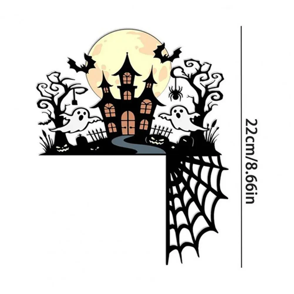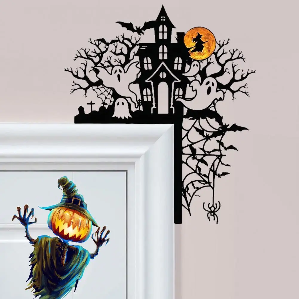 Halloween Door Corner Sign Metal Witch Cat Bat Ghost Spider Web Door Topper Sign Home Door Window Frame Decoration