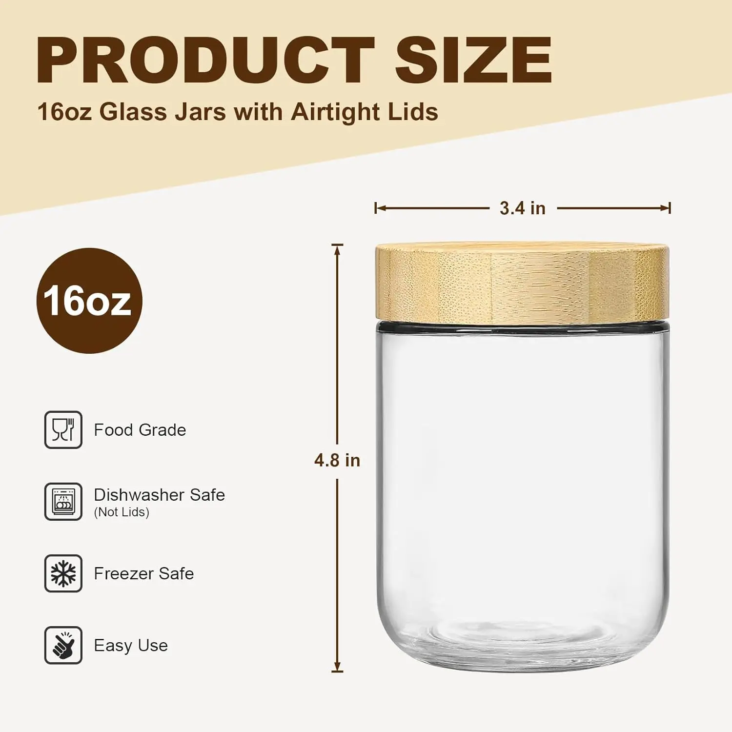 ·Safe and Durable Glass Jar Storage Containers in Multiple Sizes: These glass containers with lids come in two sizes: 10 oz and 16 oz. They're perfect for overnight oats jars, yogurt jars, salad jars,pickles, and sauces. Their sturdy, reliable construction ensures long-lasting durability, and they're BPA-free to keep your food fresh and safe.
