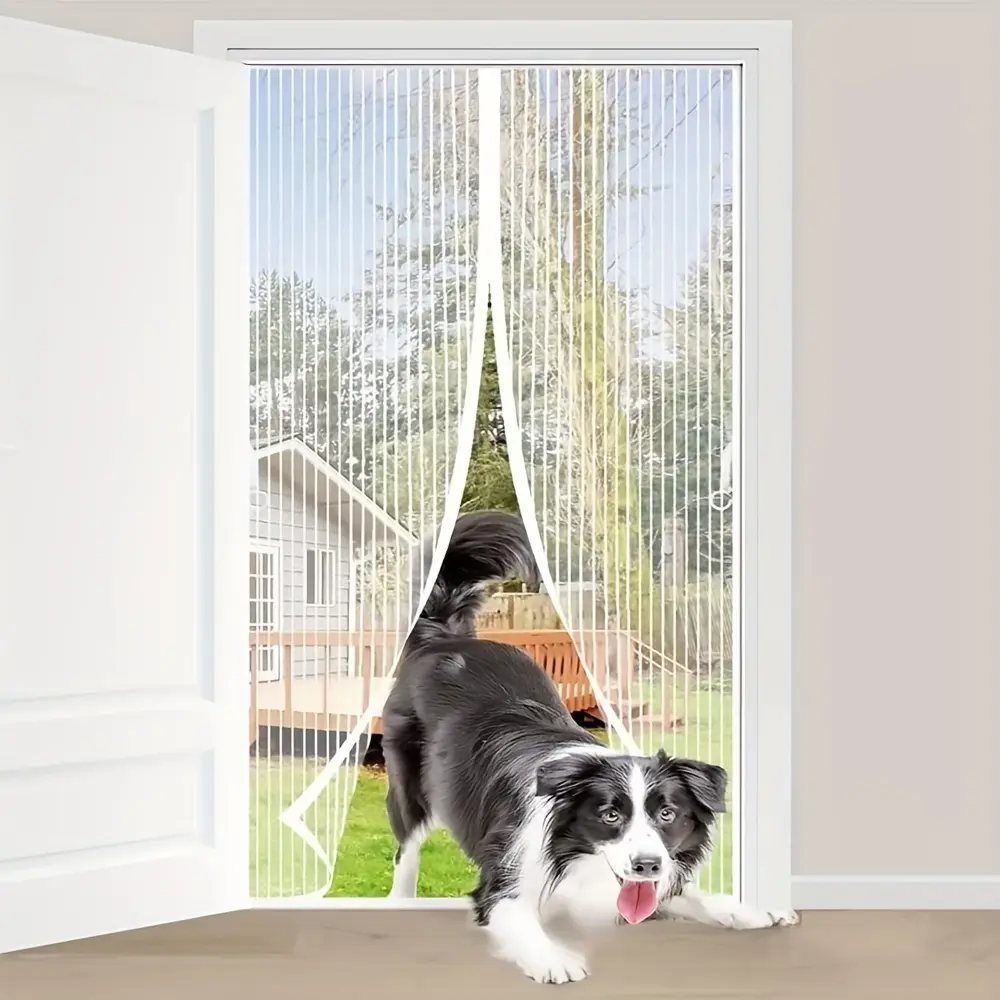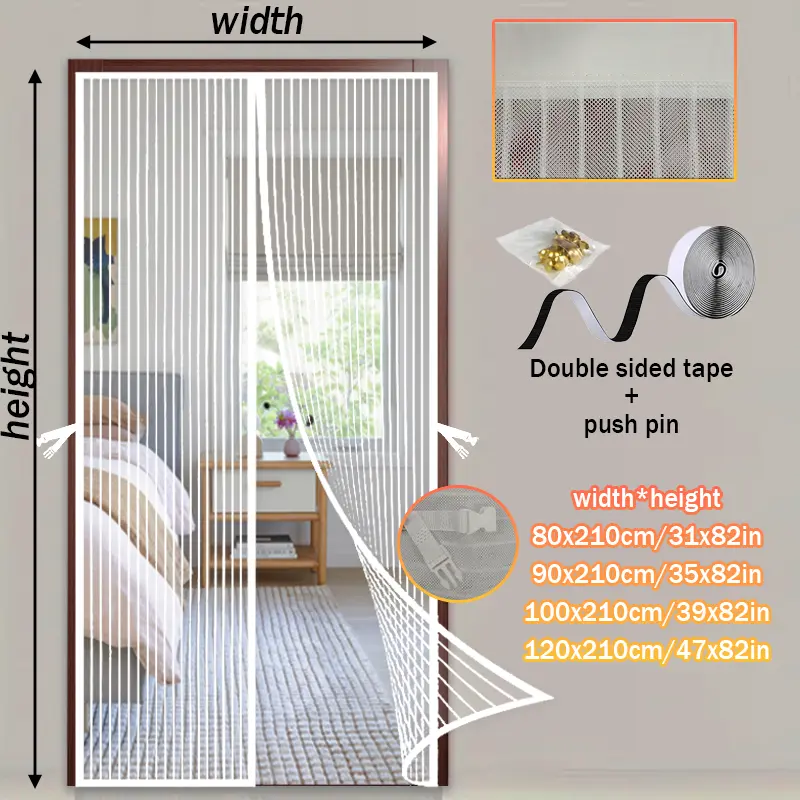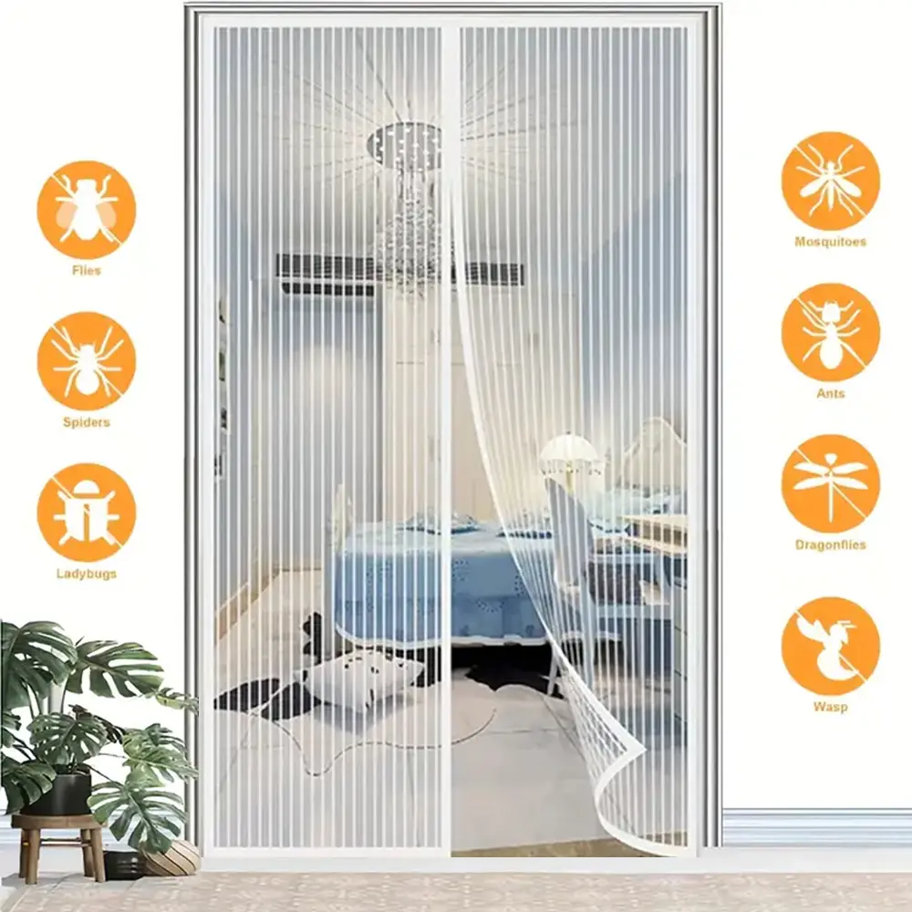 Magnetic Screen Door, Heavy-Duty Reinforced Mesh, White Striped Dense Weave with Clasps, Smooth Auto-Close, Hands-Free, No-Gap Seal, Anti-Mosquito Door Screen for Bedrooms & Balconies | Modern Minimalist Design