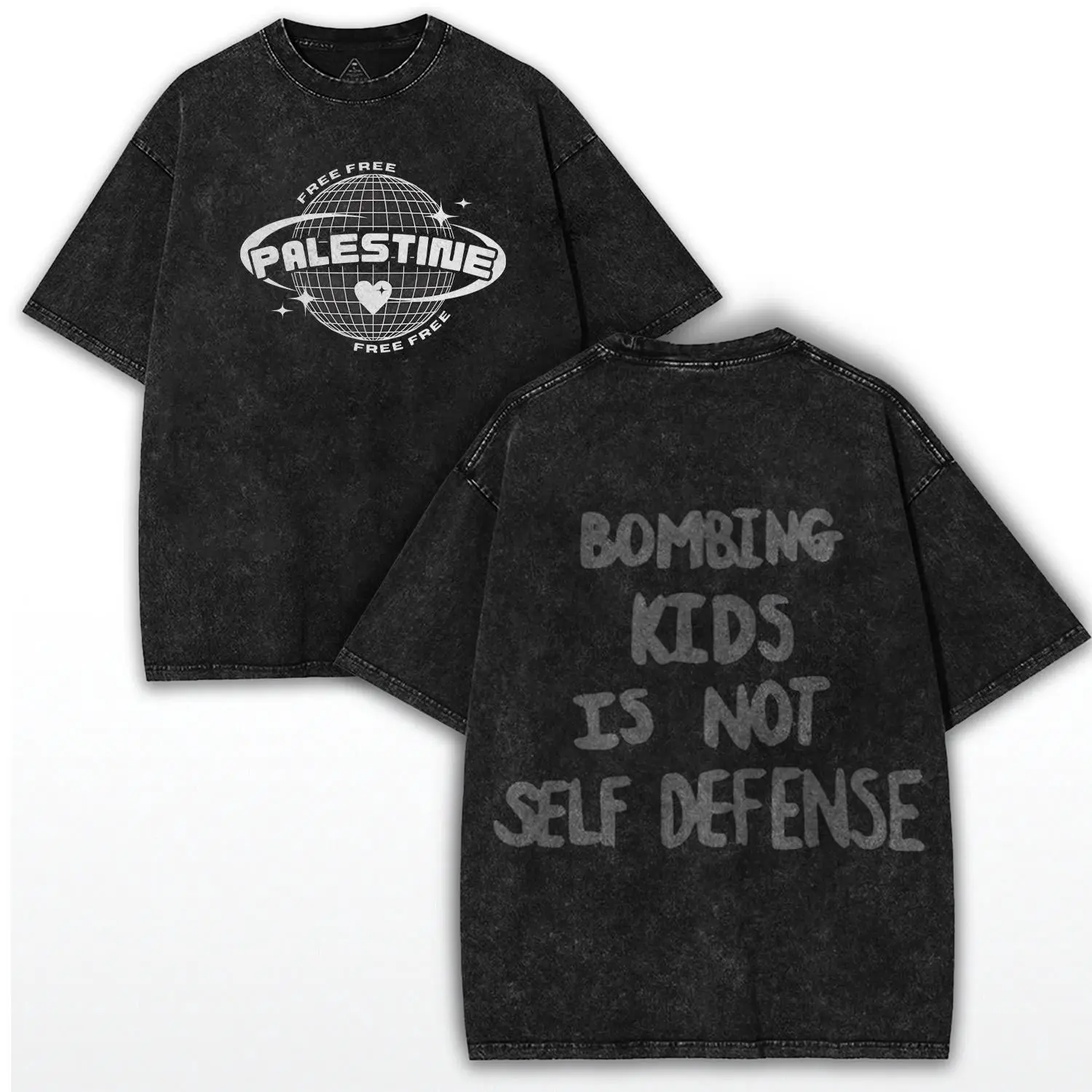Free Palestine Oversized Washed Protest Tee – Double Printed Streetwear with Solidarity Quote Graphic| Bold Political Statement
