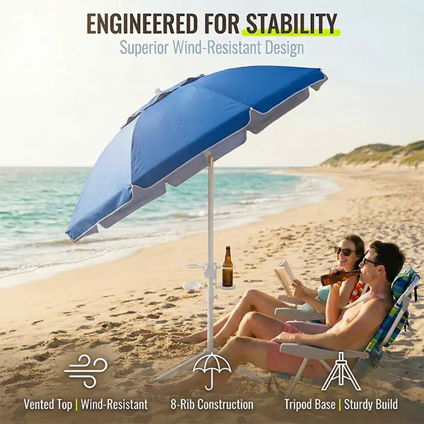 Supported by 8 durable fiberglass ribs—strong, flexible, and rust-resistant.
