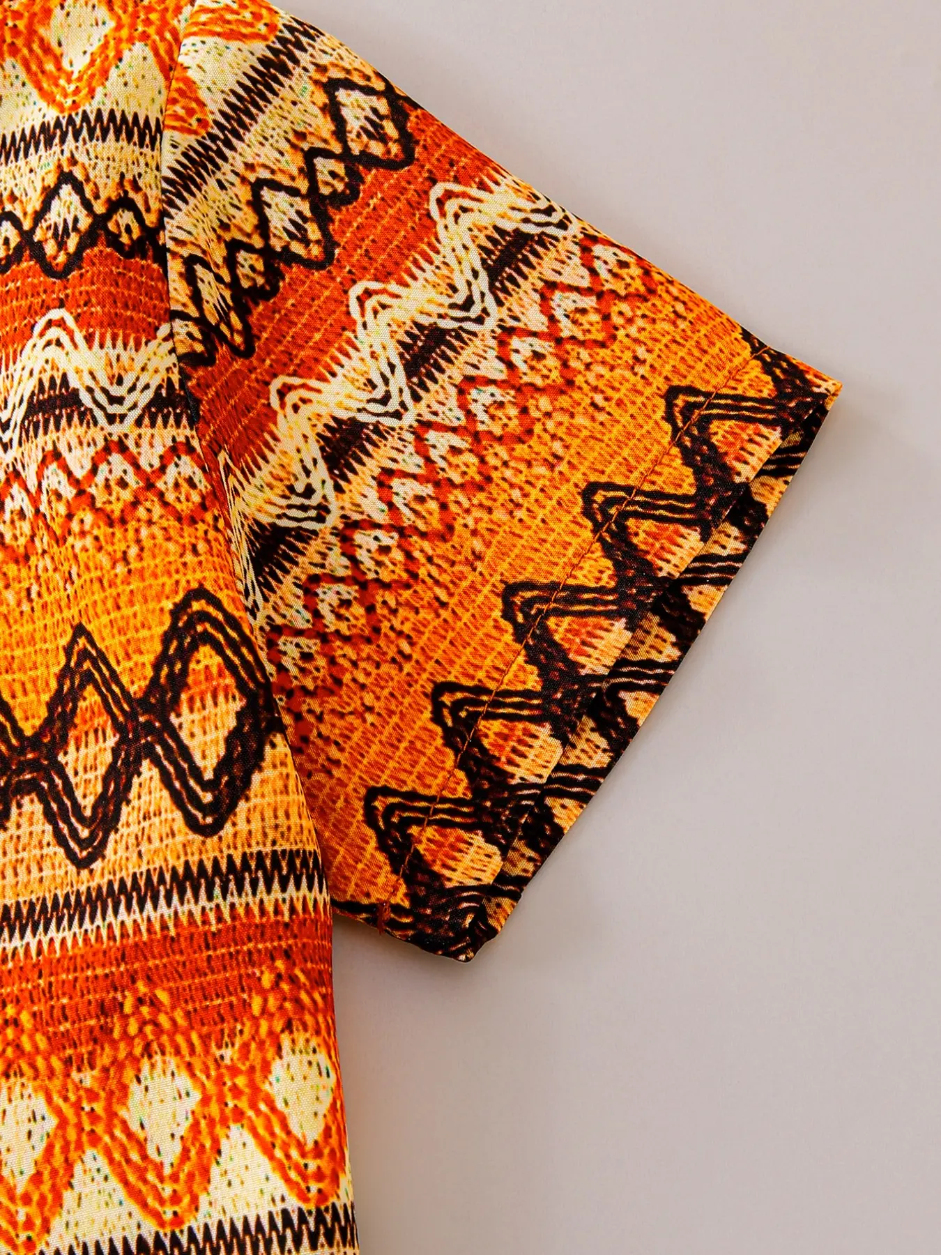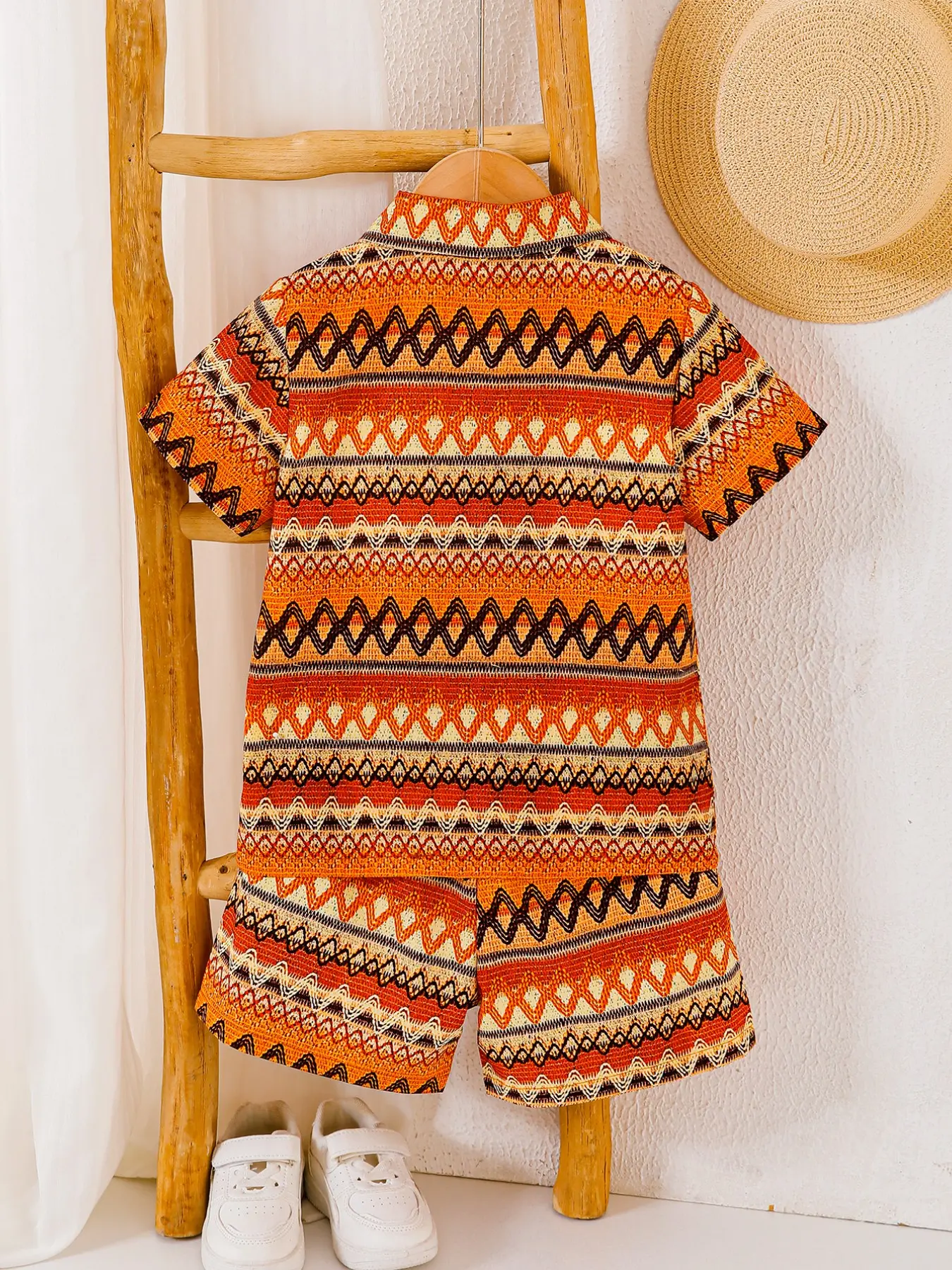 Boys Summer New Set, Button-Up Shirt with Geometric Patterns + Woven Texture Vacation Style Digital Print Casual