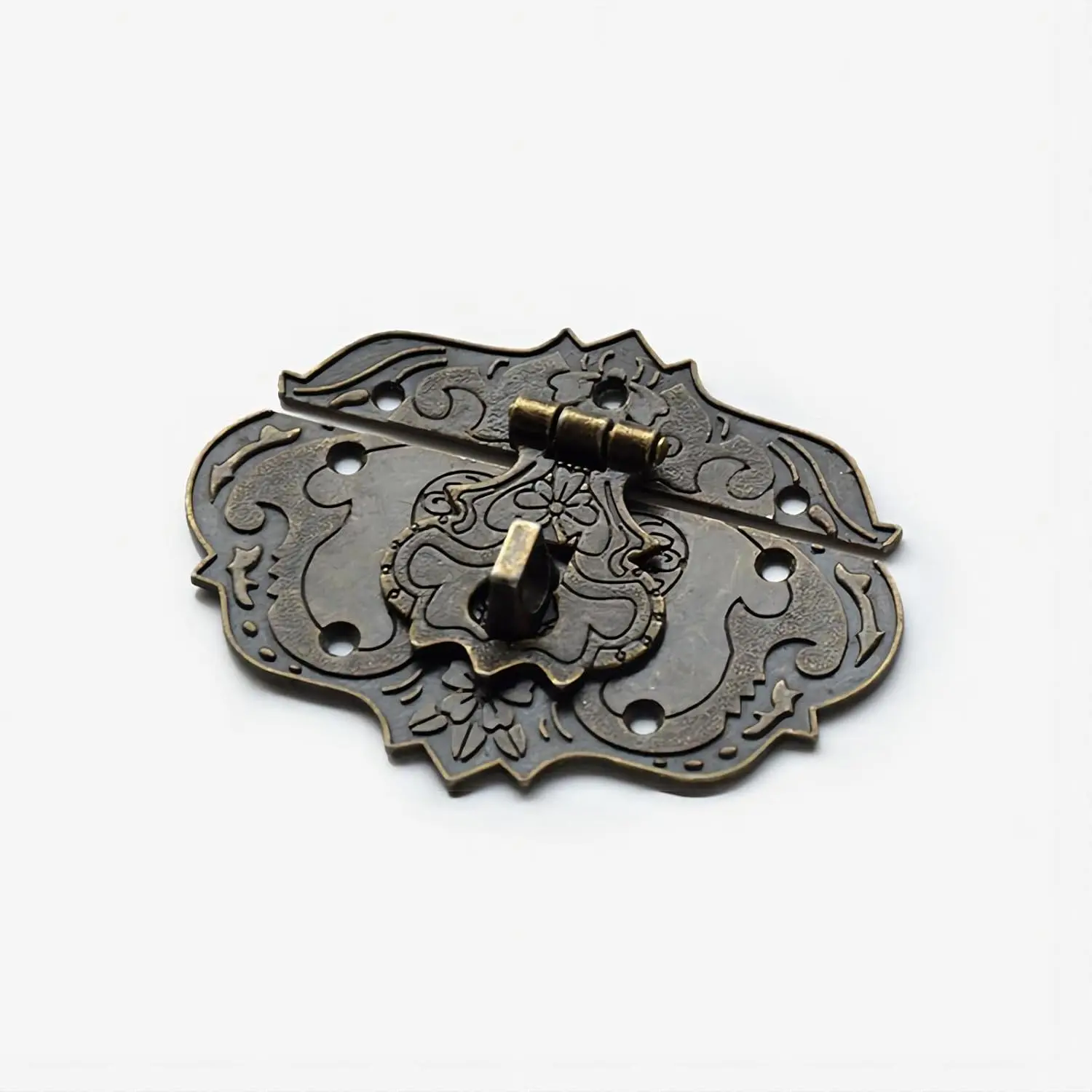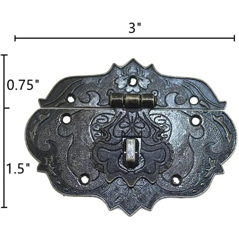 Antique Style Decorative Brass Hasp Clasp Latch Lock Set with Mounting Hardware for Jewelry Boxes, Wooden Chests, Cabinets, Trunks, and Furniture Embellishment, Vintage Bronze Finish, Two-Piece Hardware Kit for Secure Closure and Ornamental Detailing on Various Wood Craft Projects and Antique Restoration.