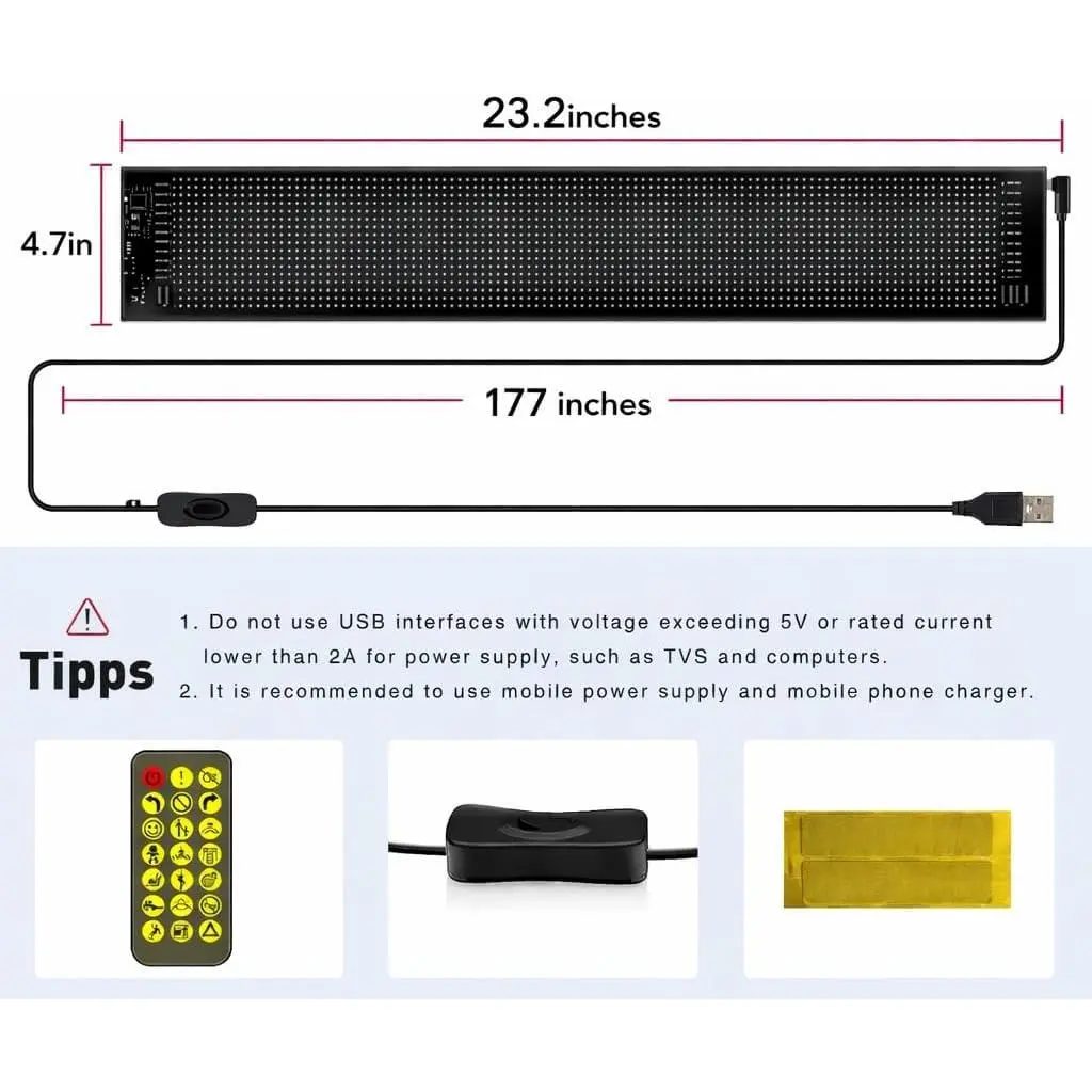 Programmable LED Message Board, Digital Scrolling Sign with App Control for Store Window, Shop, Bar, and Car Display, USB Powered (23 x 4Inch)