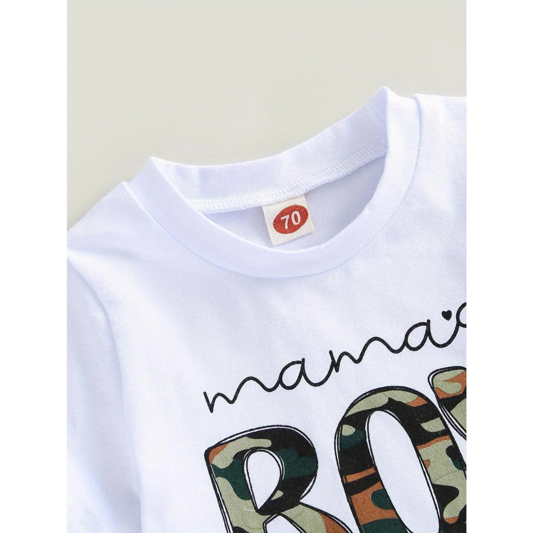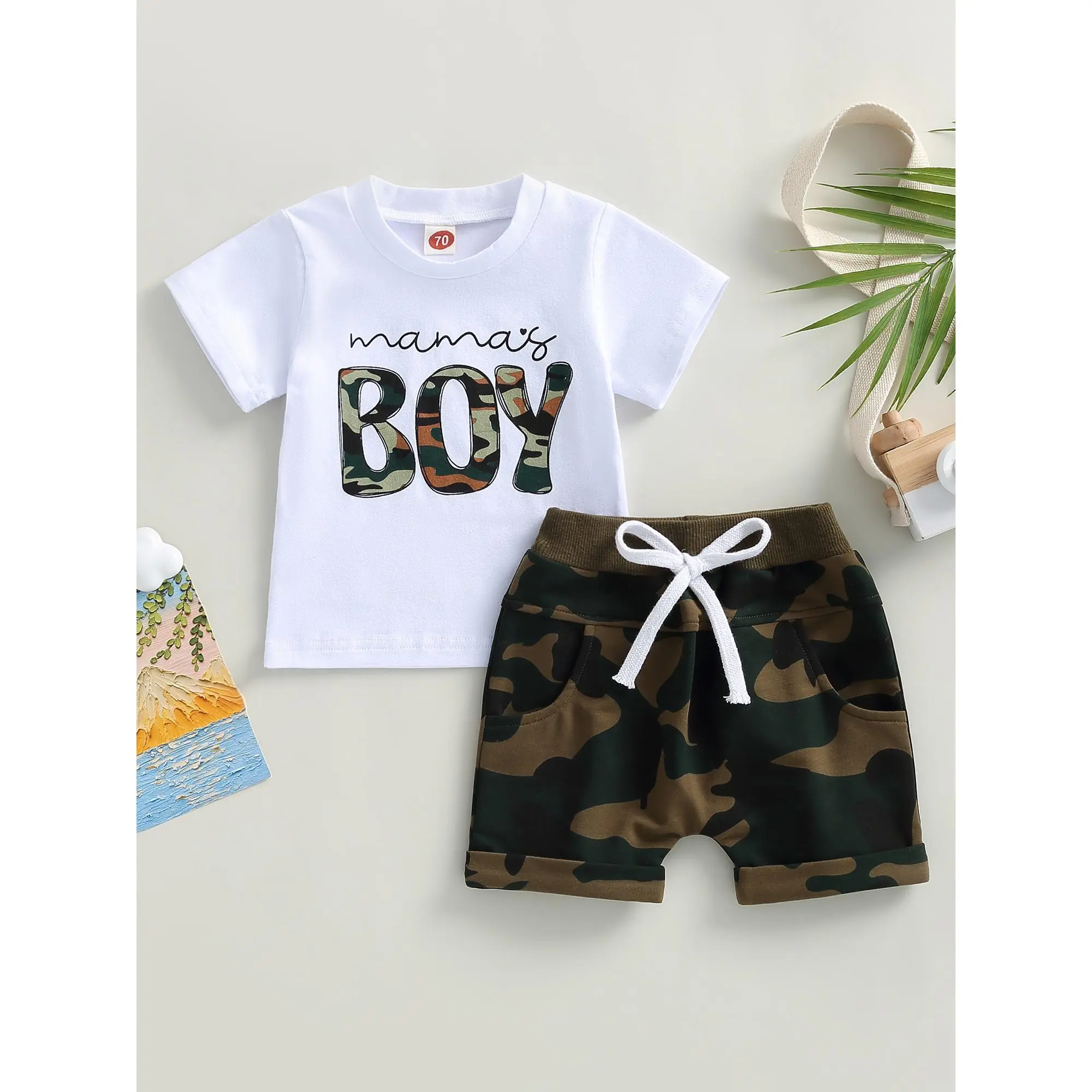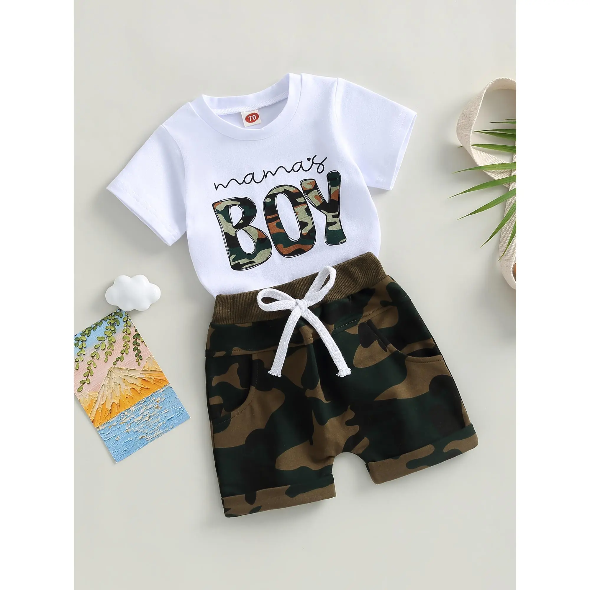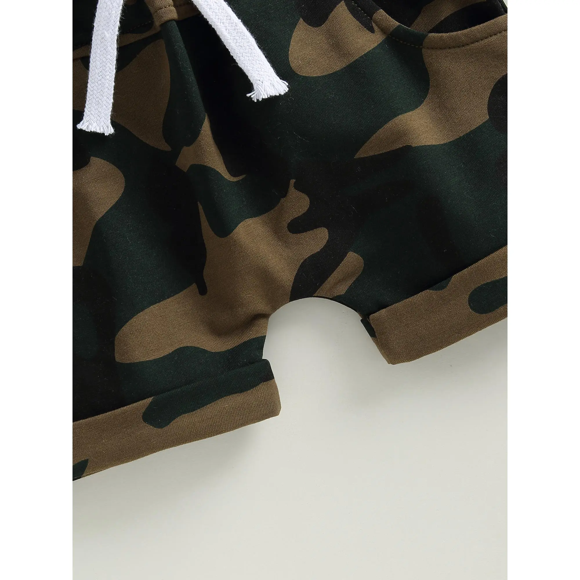 0-3 Years Baby Boys Shorts Set, Short Sleeve Letters Print T-shirt with Camouflage Shorts Summer Outfit, for Outdoor