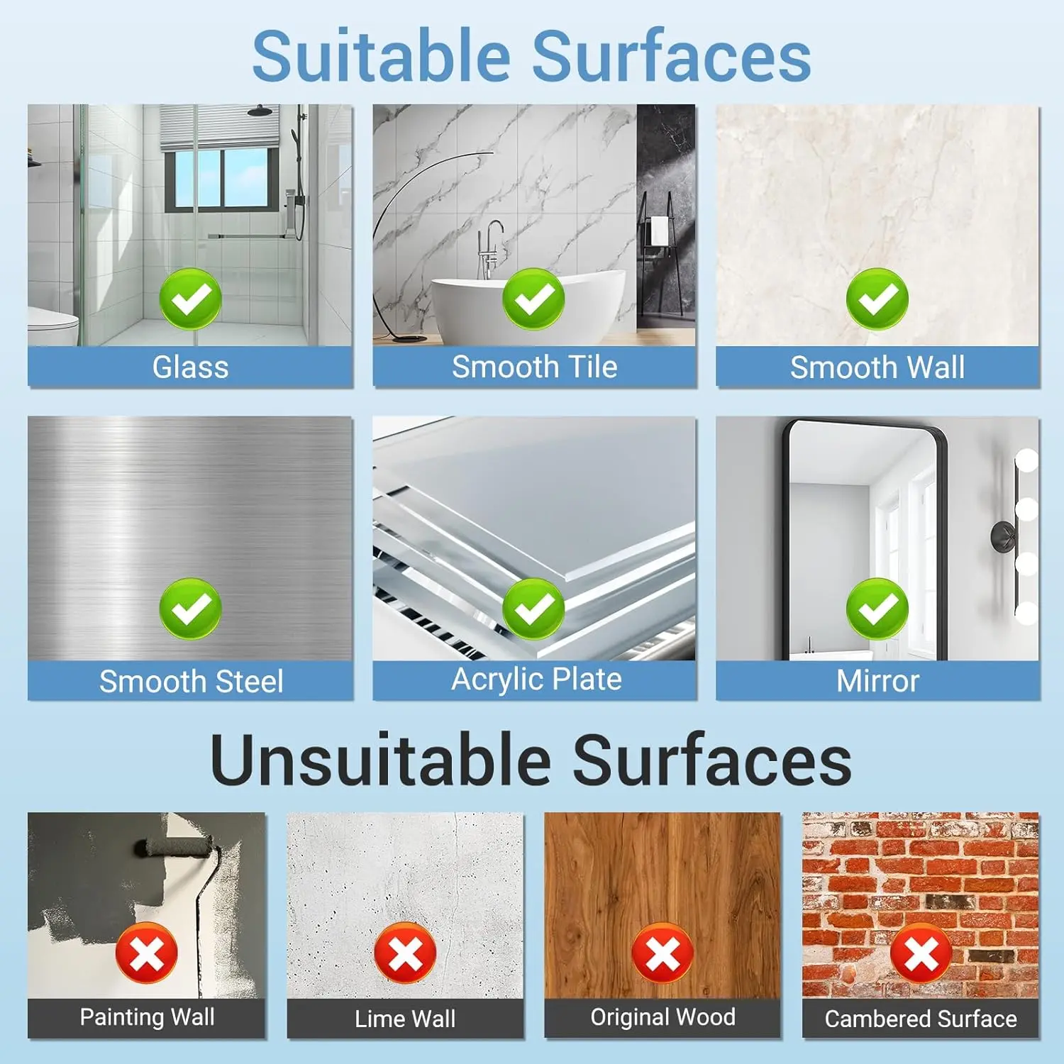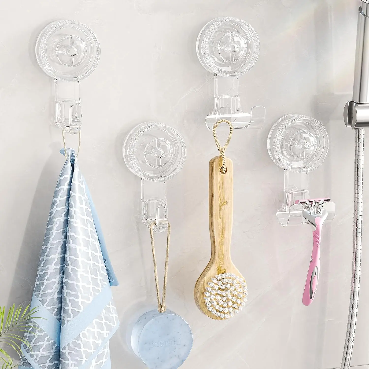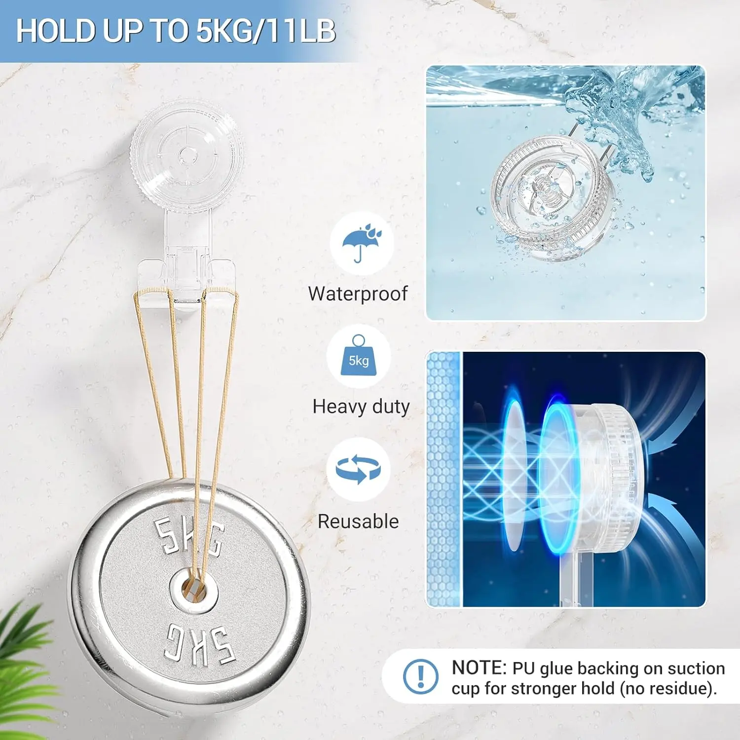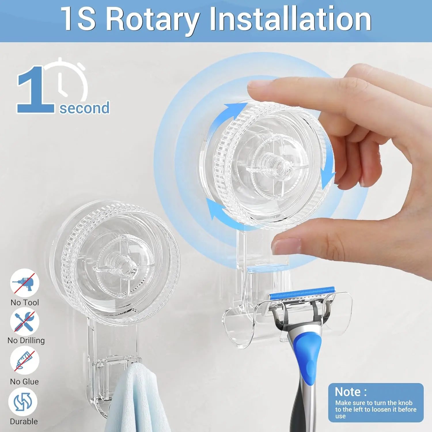 [5KG STRONG HOLD: SUCTION + ADHESIVE DUAL POWER]Crafted with high-strength transparent PVC material, these razor hooks combine powerful vacuum suction with a layer of 100% residue-free PU adhesive on the suction cup back.The dual design enhances grip significantly, ensuring ultra-stable holding up to 5KG (11.02lb) – securely hang towels, bathrobes, loofahs, razors, and other daily essentials without slipping or falling off.[RESIDUE-FREE NO MARKS ON ANY SURFACE]The specialized PU adhesive on the suction cup is designed to be non-sticky and trace-free.It boosts adsorption while leaving zero residue, stains, or damage on walls, tiles, mirrors, glass, or metal surfaces.Keep your home decor intact even after repeated installation and removal.[TOOL-FREE INSTALLATION: 2 STEPS ONLY]No drills, screws, nails, or holes needed!Simply attach the suction cup to a clean, smooth surface, press firmly to expel air, then rotate the knob until it locks in place.Installation takes seconds, and removal is equally easy – perfect for renters or anyone wanting to avoid wall damage.[REUSABLE & LONG-LASTING: REGAIN FULL POWER ANYTIME]These hooks are designed for repeated use.When you need to reposition or reuse them, just soak the suction cup in 50-60℃ warm water for 5 minutes, dry thoroughly, and the suction function will recover completely.Enjoy reliable performance cycle after cycle.[WIDE COMPATIBILITY: FITS ALL SMOOTH NON-POROUS SURFACES]Ideal for organizing bathrooms, kitchens, bedrooms, or even holiday decor!Perfect for hanging towels, bathrobes, loofahs, razors, sponges, spoons, washcloths, aprons, or Christmas wreaths.Works seamlessly on glass, mirrors, metal, ceramic tiles, and all non-porous smooth surfaces.NOTE: Not suitable for rough, matte, or porous surfaces (e.g., painted walls, textured drywall).[WARM TIPS & RELIABLE WARRANTY]For best results, ensure the installation surface is clean, dry, and free of dust before use.If you have any questions or issues with the product, feel free to contact us – we offer a hassle-free warranty to give you complete peace of mind.