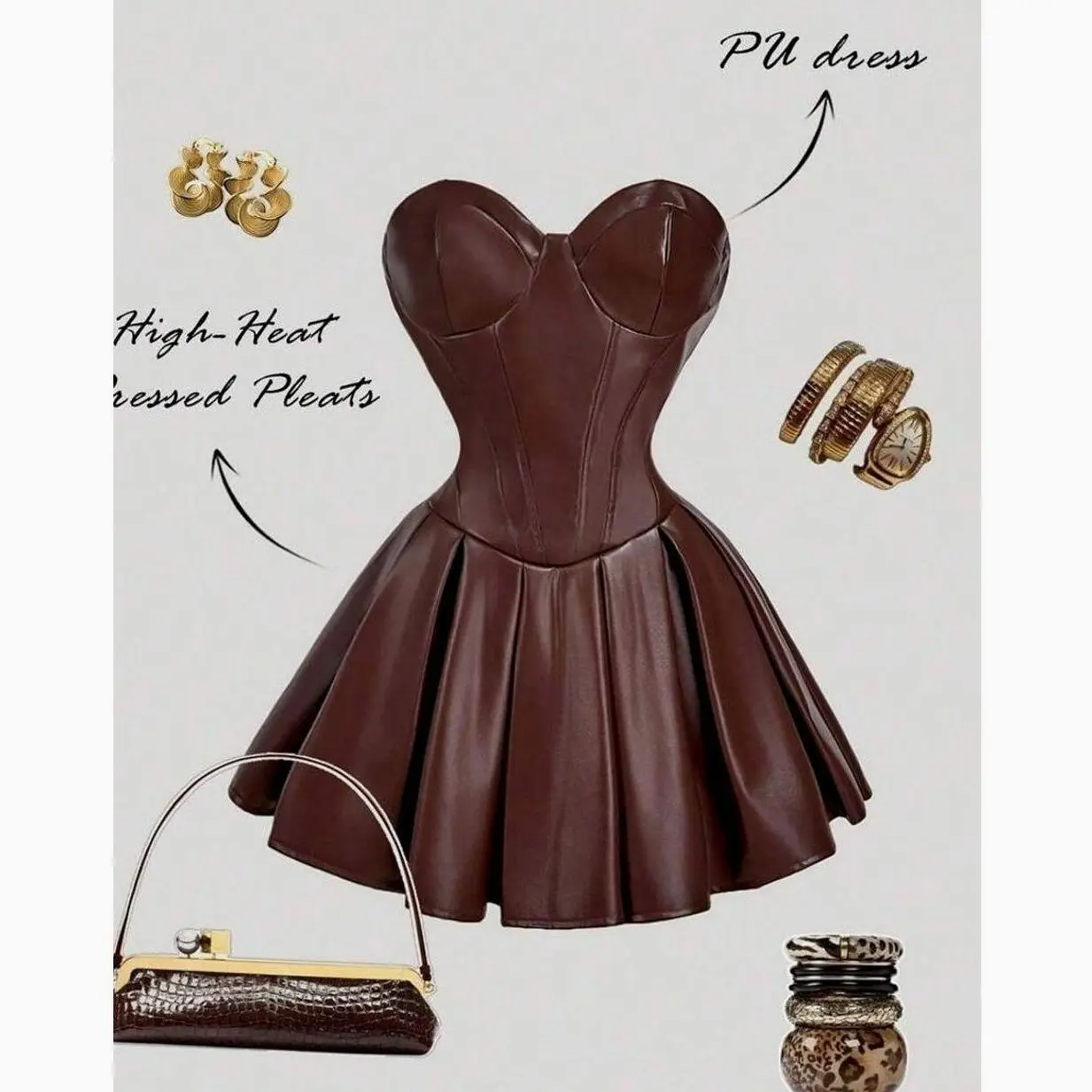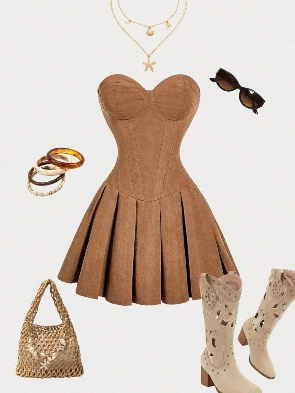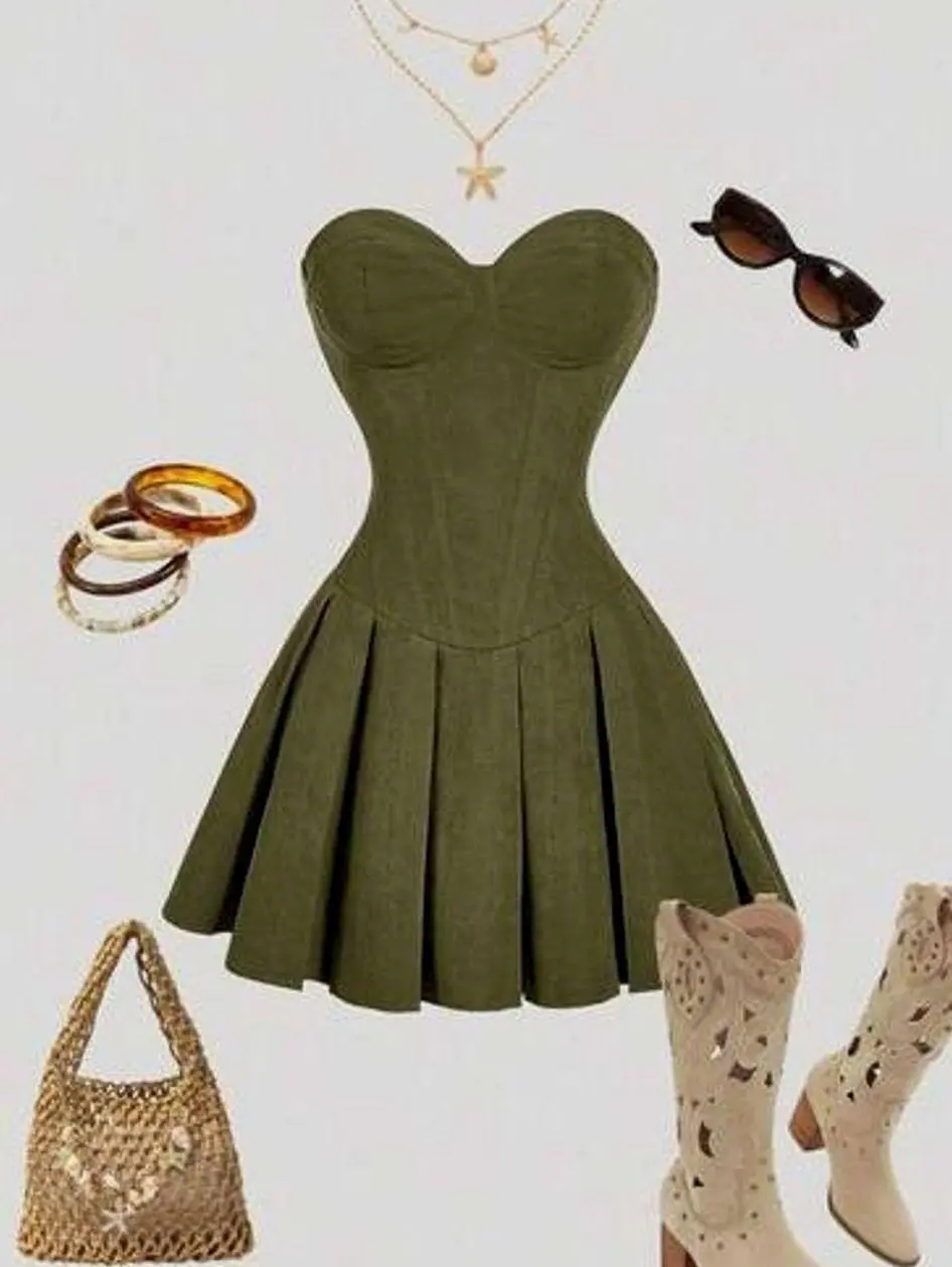 Vintage Style Suede Bustier Mini Dress Pleated Figure-Hugging Country Western Outfit
