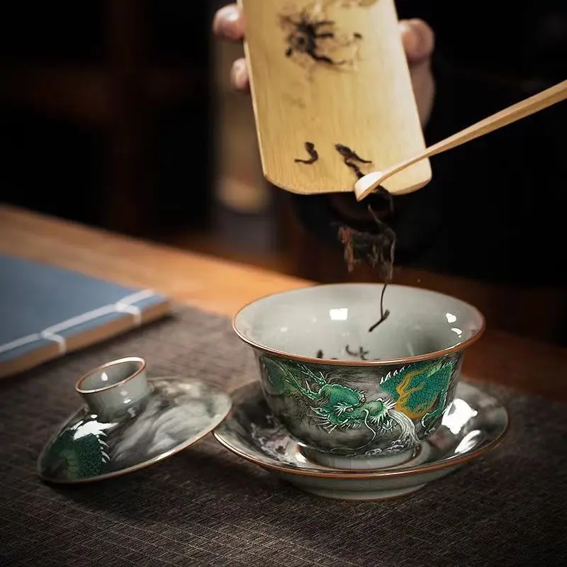 This tea bowl is part of a traditional Chinese tea set. It embodies the essence of Chinese tea culture. The bowl and lid are designed to enhance the tea-drinking experience. Perfect for those who appreciate traditional tea ceremonies. Elevate your tea time with this authentic piece.