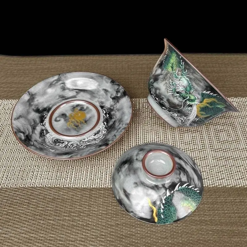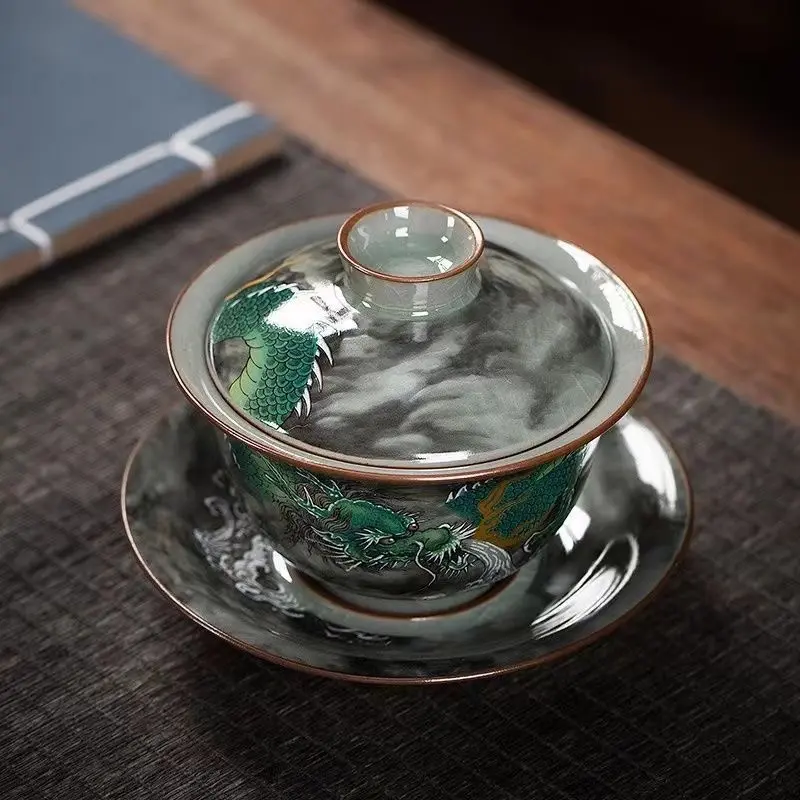 The bowl showcases an intricate Ink Wash Cloud Dragon Design. This artistic motif adds a touch of elegance and cultural significance. The design is meticulously executed, reflecting the traditional Chinese artistry. It makes this tea bowl a standout piece in any collection. Enjoy the beauty of this design with every sip.