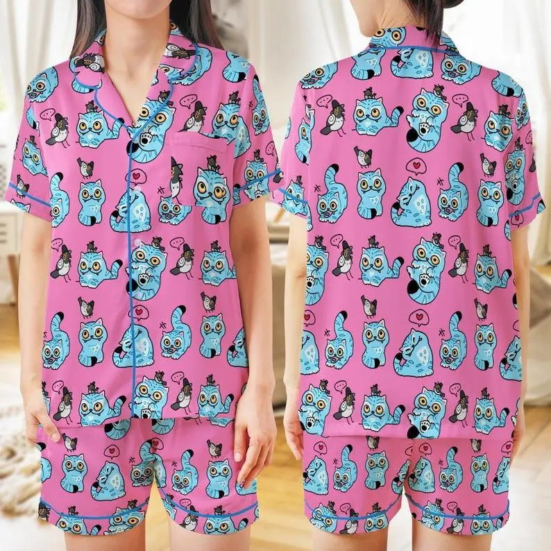 Kpop Demon Hunters Tiger Satin Pajama Set, Derpy Tiger & Bird Silky Sleepwear, Cozy Anime Lounge Outfit, Cute Gift for Fans