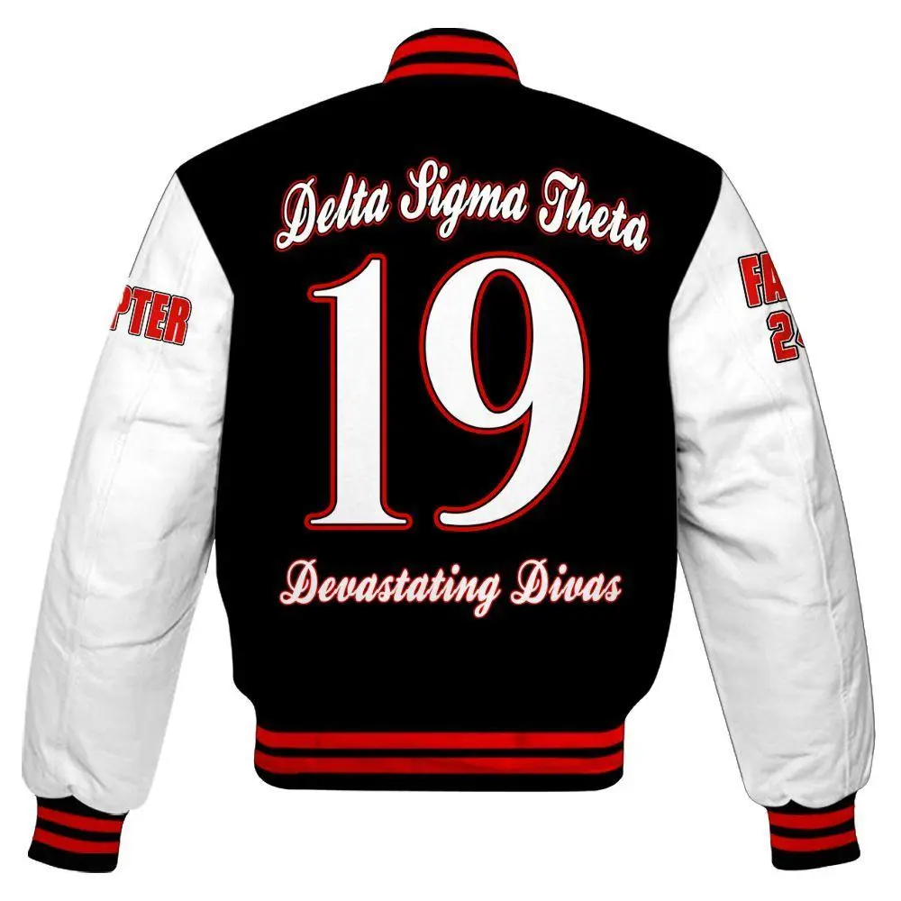 Delta Sigma Theta Custom Chapter Varsity Jacket, Personalized DST Sisterhood 1913 Sorority Letterman, Unique Greek Member Gift, Premium Red White Coat