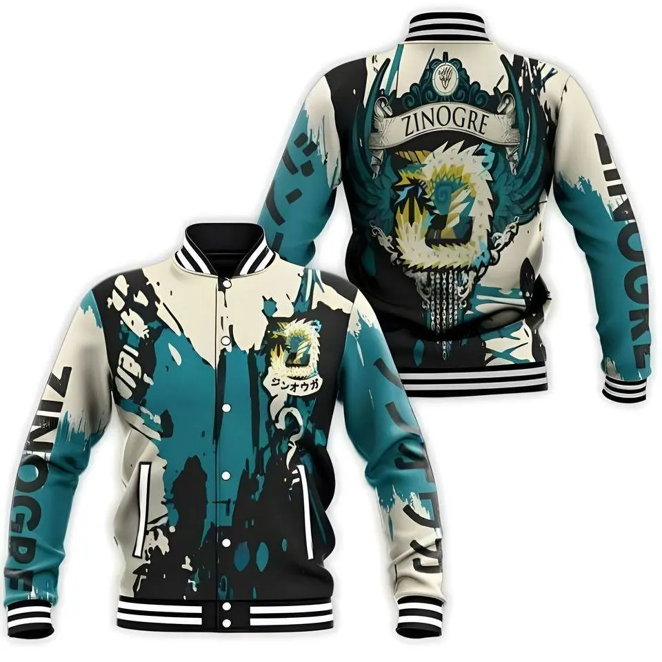 5. Monster Hunter Zinogre Graphic Varsity Jacket Gaming Style Streetwear, Unique Fan Outerwear Gift