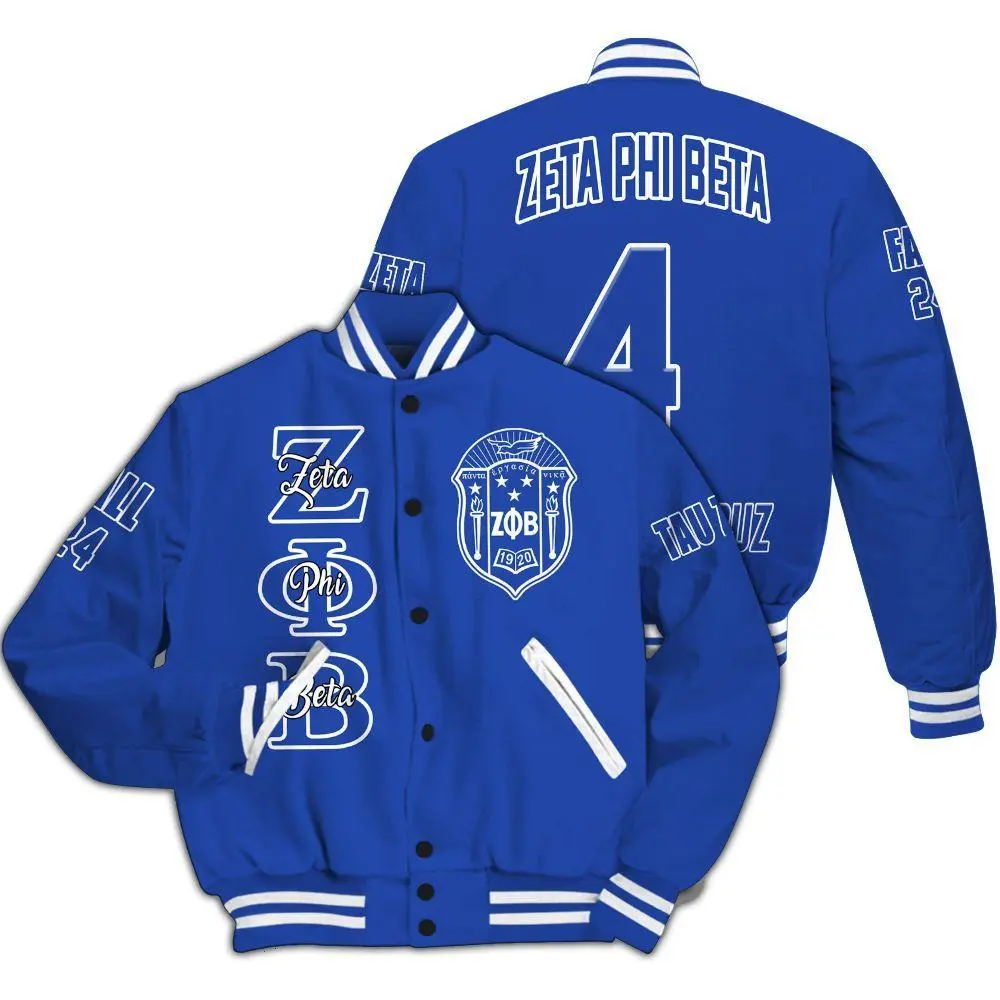 Zeta Phi Beta Custom Chapter Varsity Jacket, Personalized Blue ZΦΒ Sorority Outerwear, 1920 Foundation Royal Blue & White Letterman, Greek Crossing Gift