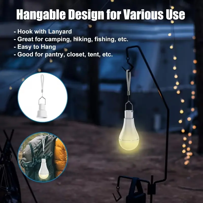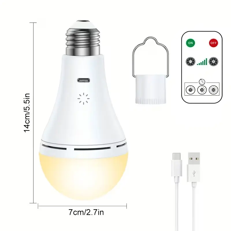 USB Rechargeable LED Light Bulbs E27 9W Dimmable Timer Remote Control 3 Color Temperature Battery Powered Touch Control Emergency Bulb With Hook 2000mAh wireless outlet