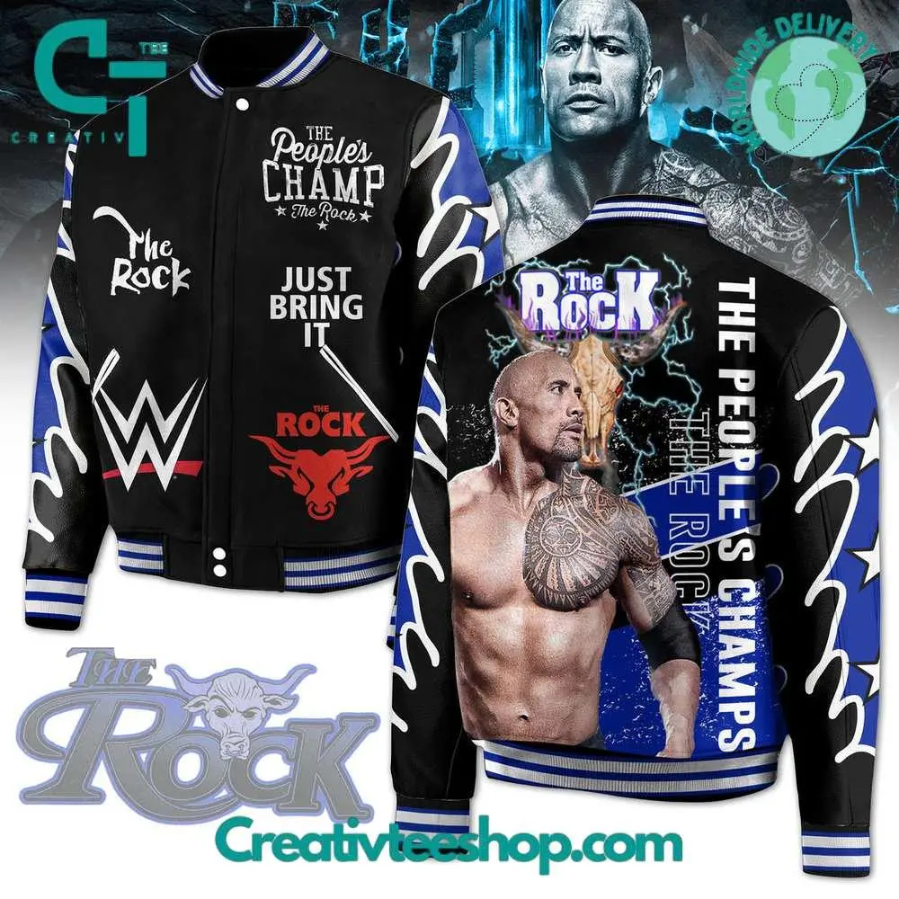 The Rock Wrestling Varsity Jacket Retro Sports Style, Vintage Fan Apparel, Bold Streetwear Fashion Piece