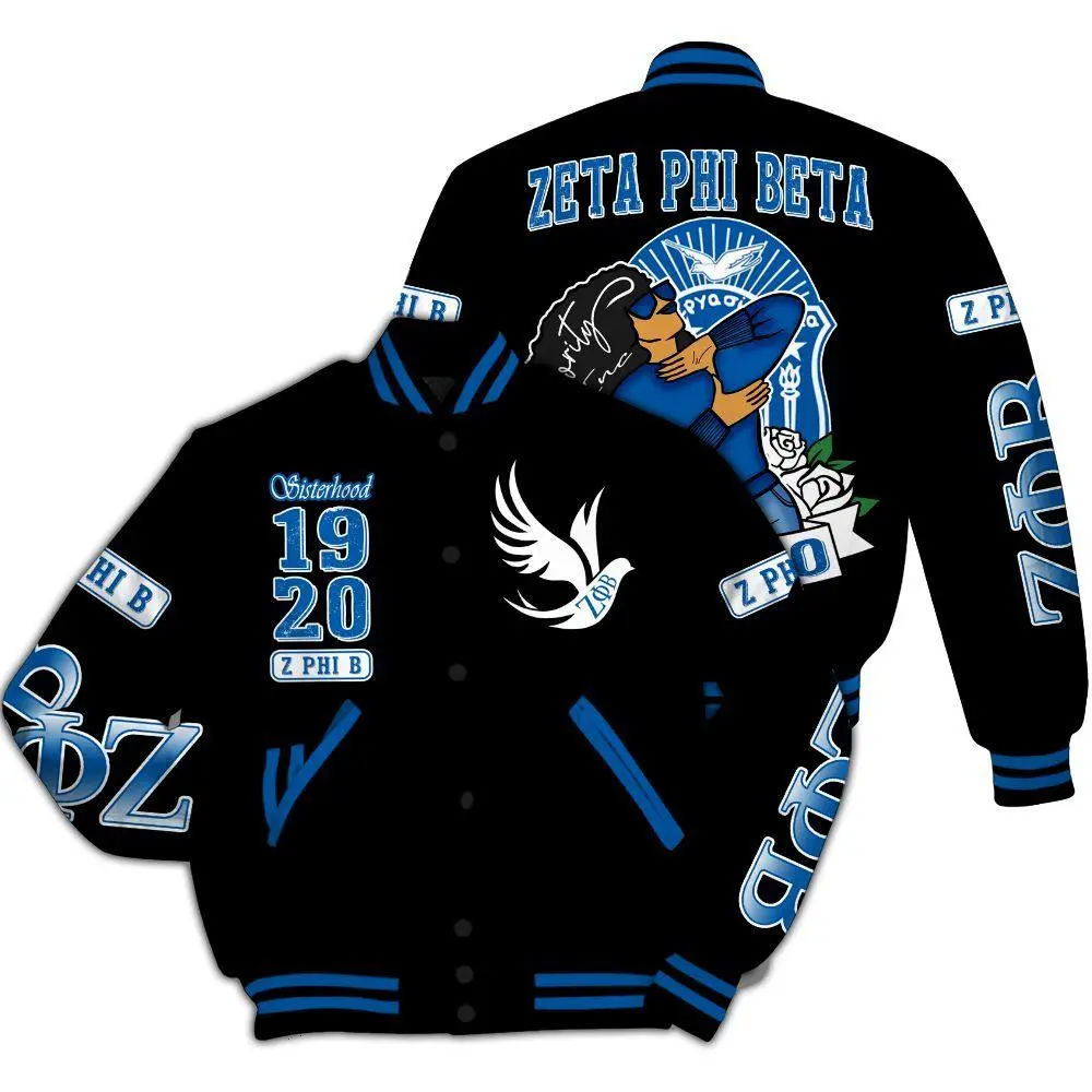 Zeta Phi Beta Varsity Jacket, Sisterhood Beta Girl Black Letterman Coat, 1920 ZΦΒ Sorority Greek Life Apparel, Premium Finer Womanhood Gift