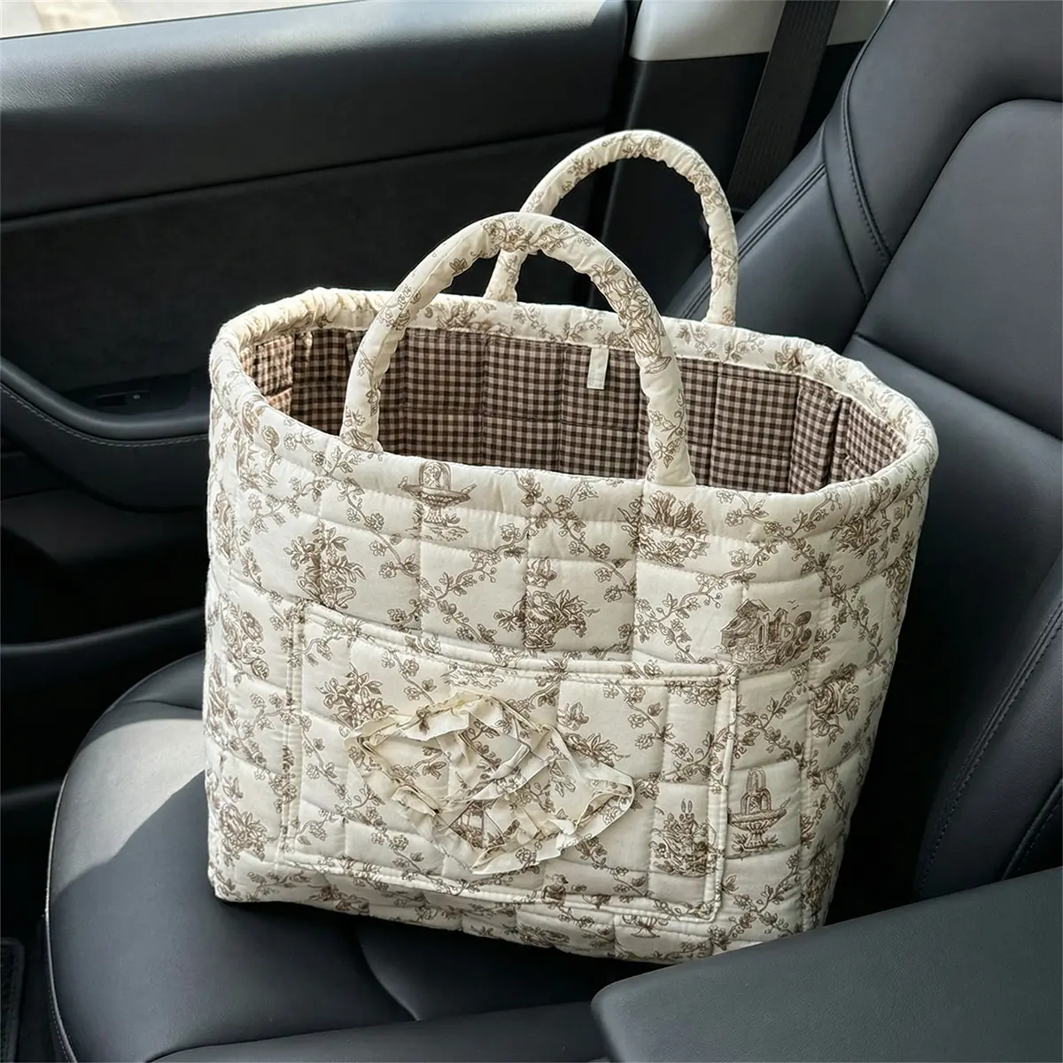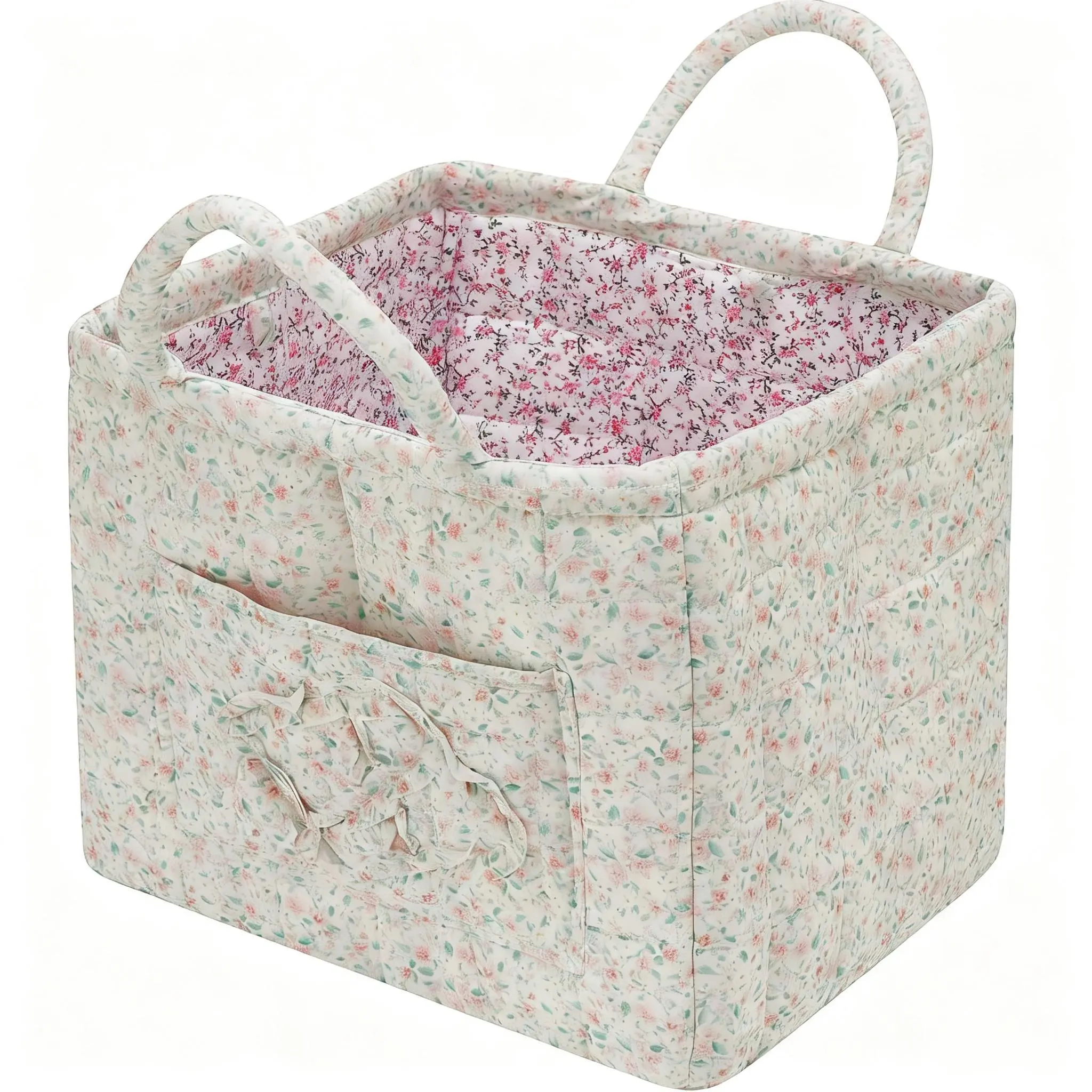 Floral Foldable car Storage Basket Cotton Fabric Collapsible Laundry Hamper for Clothes Toys & Blankets Car Trunk Organizer Backseat Storage Machine Washable Decorative Bin for Bedroom Bathroom & Living Room