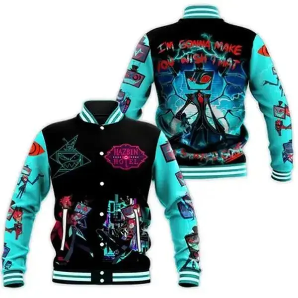 Hazbin Hotel Inspired Varsity Jacket Adult Streetwear Style, Trendy Graphic Outerwear, Casual Fashion Piece