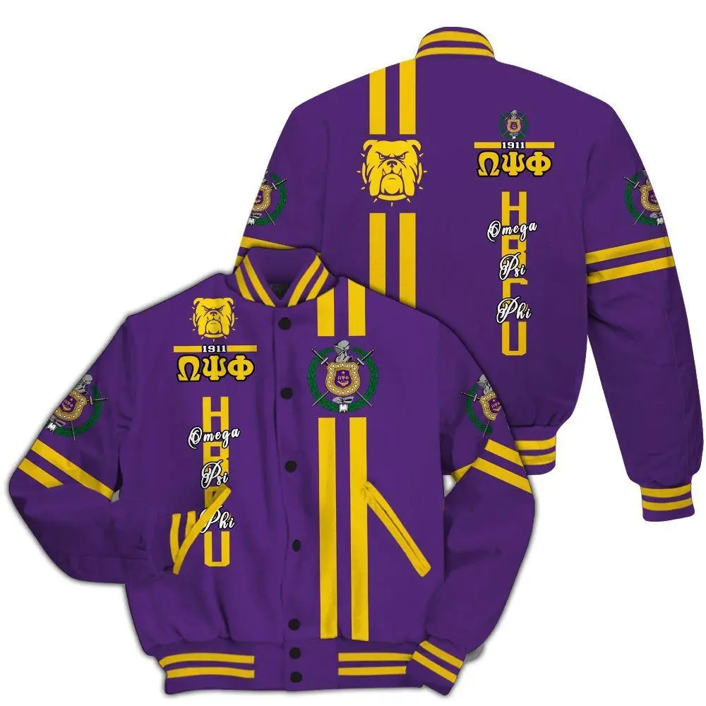 ΩΨΦ Varsity Jacket, HBCU Omega Psi Phi Fraternity Letterman, Personalized 1911 Gold & Purple Outerwear, Premium Greek Life Member Gift, Que Dog Jacket