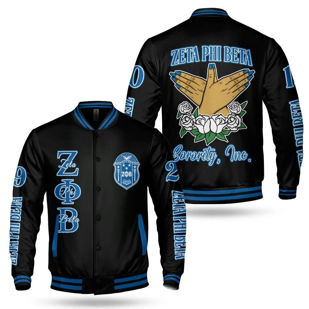 Zeta Phi Beta Varsity Jacket, Hand Sign Black Letterman, 1920 Sorority Greek Life Apparel, Unique ZΦΒ Finer Womanhood Sisterhood Member Gift