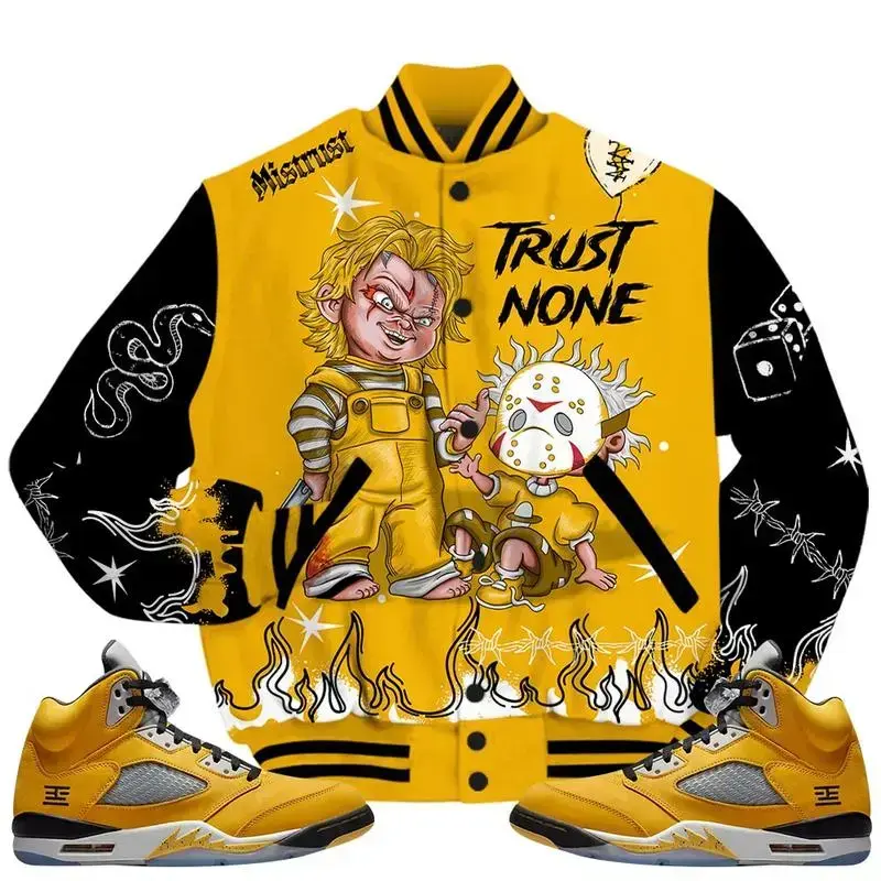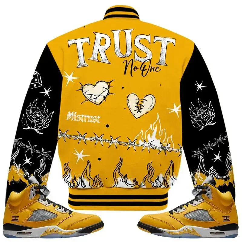 5. Tokyo 5s Inspired Varsity Jacket, Retro Maize Wolf Grey Sneaker Match Baseball Coat Trendy Sport Streetwear Casual Urban Outfit