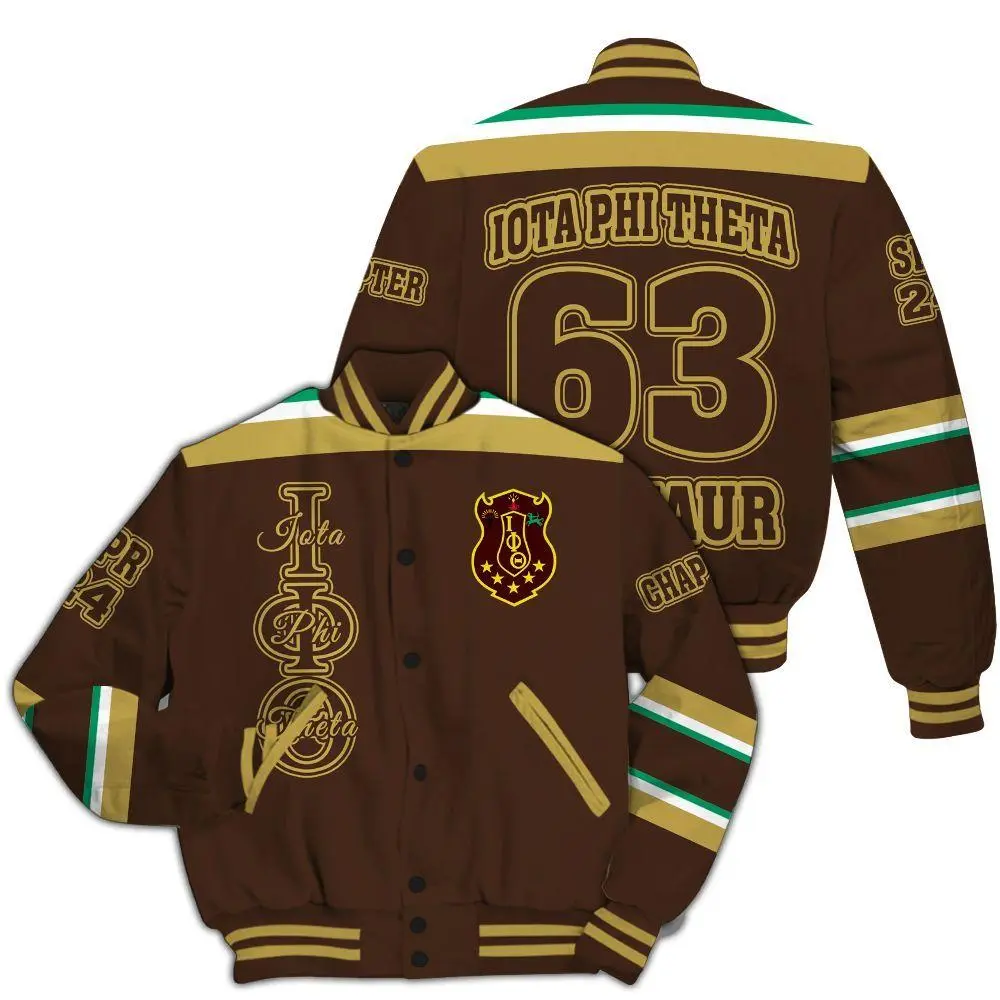 Iota Phi Theta Gold Brown Varsity Jacket Fraternity Style, Custom Chapter Outerwear, Greek Life Fashion Piece