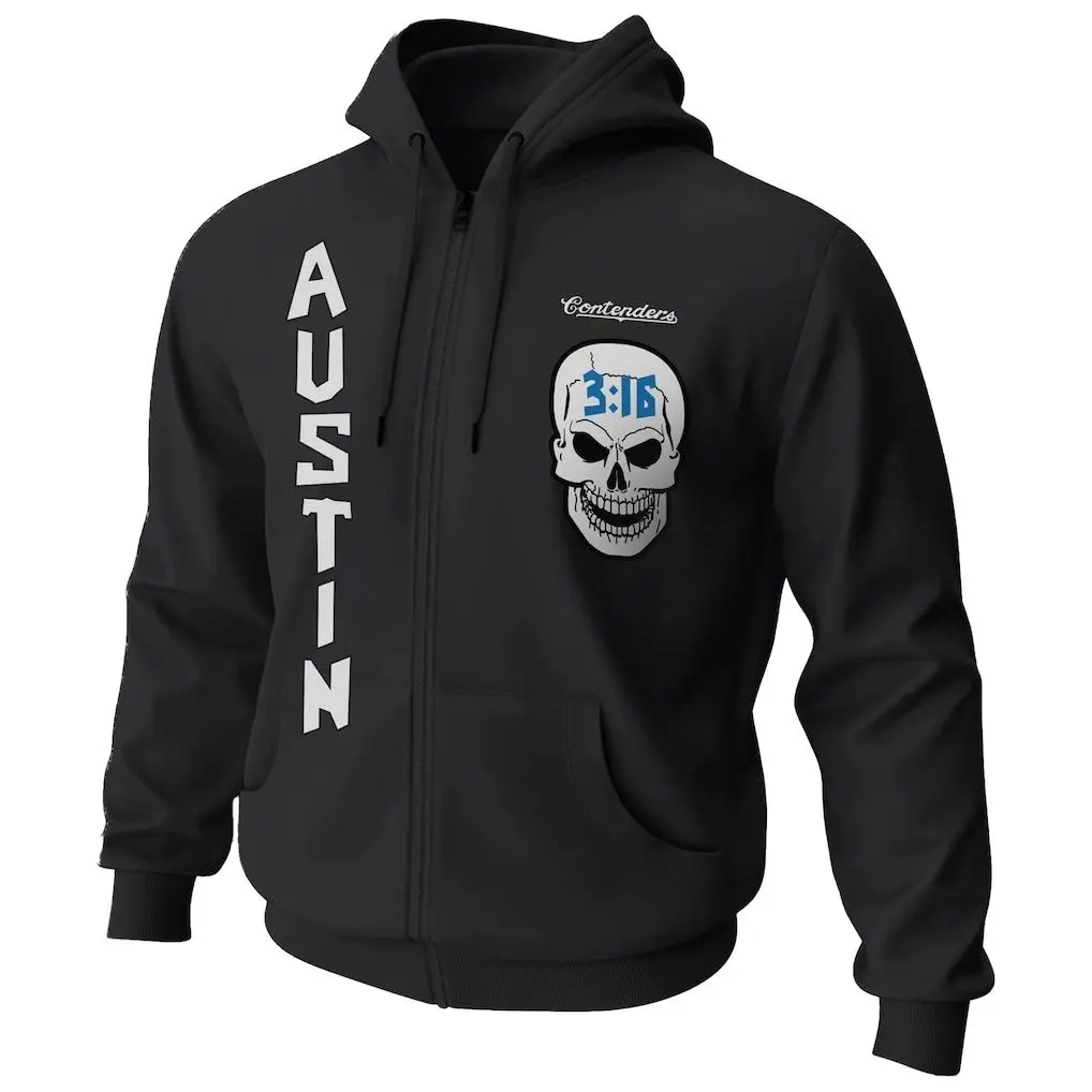 5. Stone Cold Whoop Ass Black Full Zip Hoodie, WWE Wrestling Jacket, 3:16 Attitude Era Humor, Hardcore Collector Gift, Retro Rattlesnake Streetwear