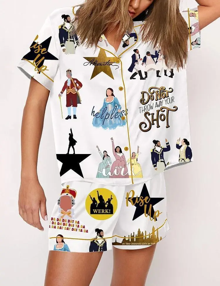 Hamilton Musical Quote Pajama Set for Women, Silky Broadway Sleepwear, Cozy Printed Lounge Outfit, Premium Theatre Fan Gift