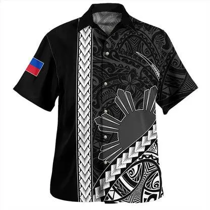 Philippines Hawaiian Shirt Tribal Polynesian Sun Gray Hawaiian Shirt 2026, Tropical Print Button-Up #tiktokshop #spotlightfinds #viraloutfits #hawaiianshirt #aloha