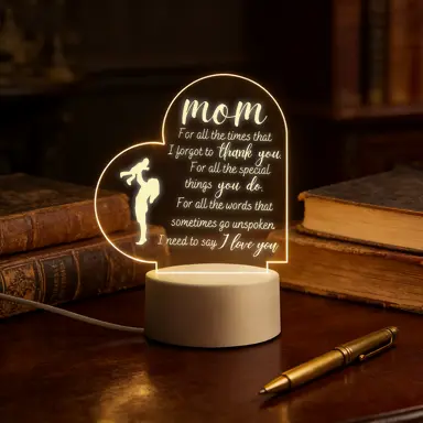 🌟 Mom Thank You Heart 2D Acrylic LED Night Light 🌟