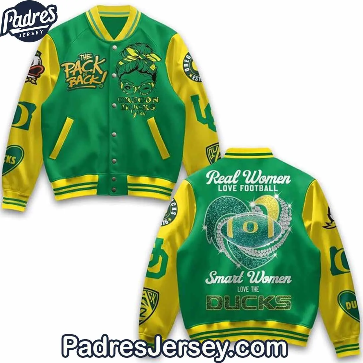 Oregon Ducks Women’s Varsity Baseball Jacket, Smart Women Love The Game Outerwear, Team Pride Streetwear, Sporty Gift Idea