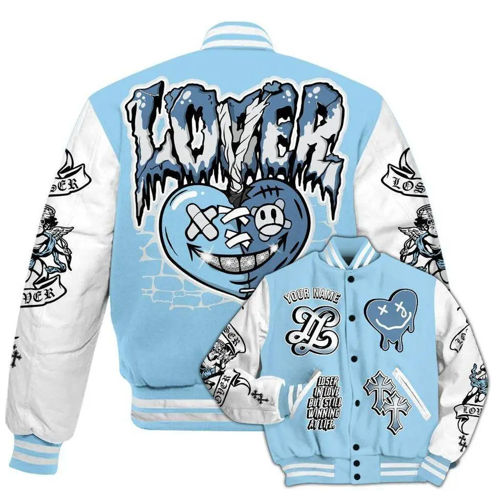 Legend Blue 11S Varsity Bomber With Lover-Loser Matching Design, Couples Streetwear Jacket For Sneaker Fans Who Coordinate Outfits