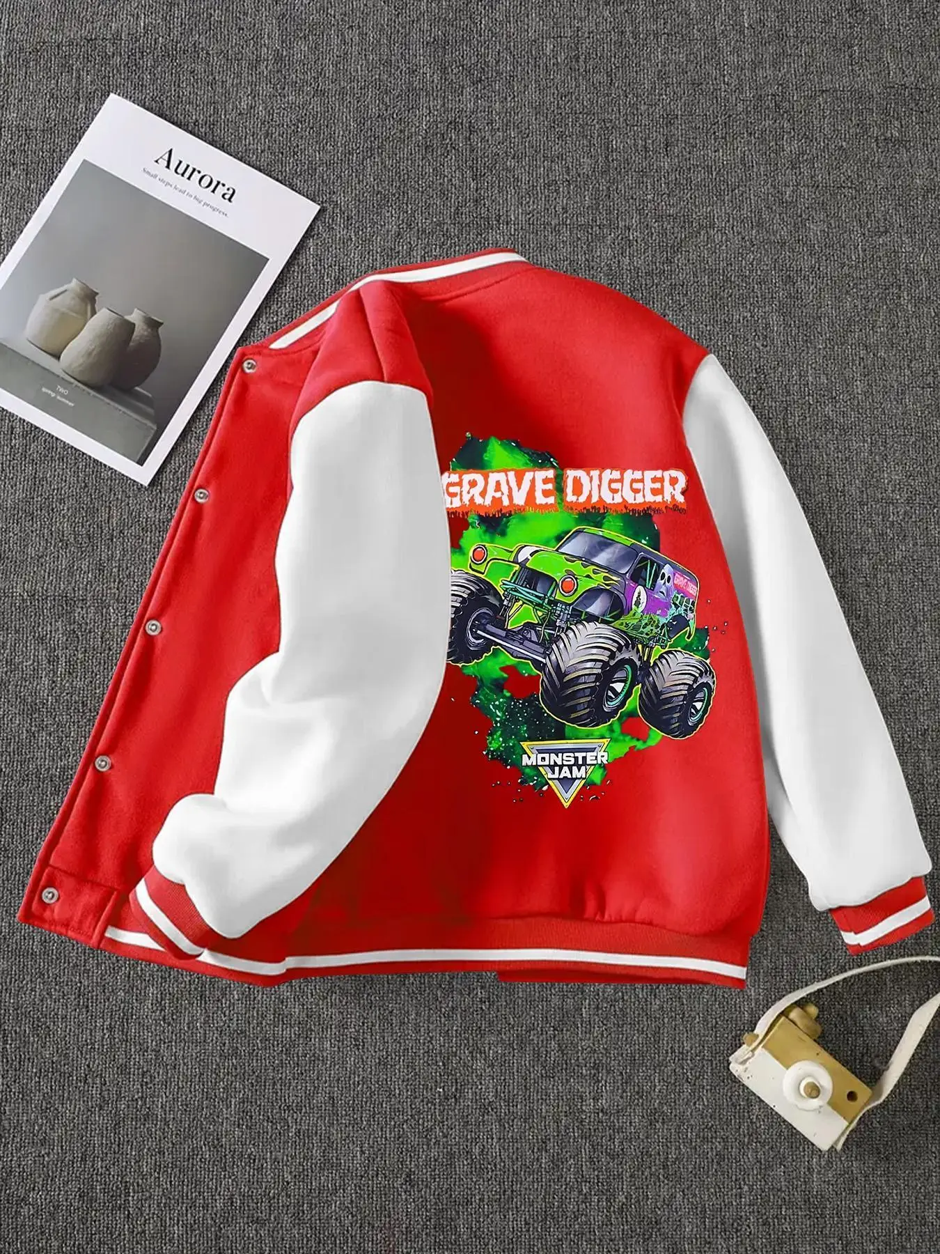 5. Off-Road Kart Kids Varsity Bomber With Sporty Cartoon Racing Artwork, Cool Lightweight Streetwear Jacket Great For Spring Or Fall Seasons