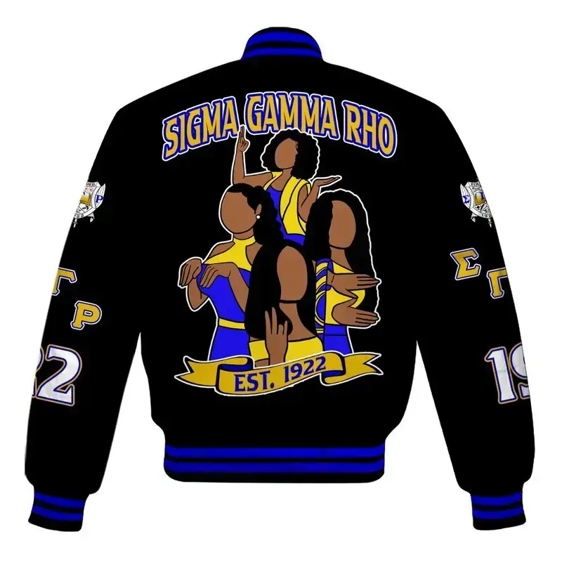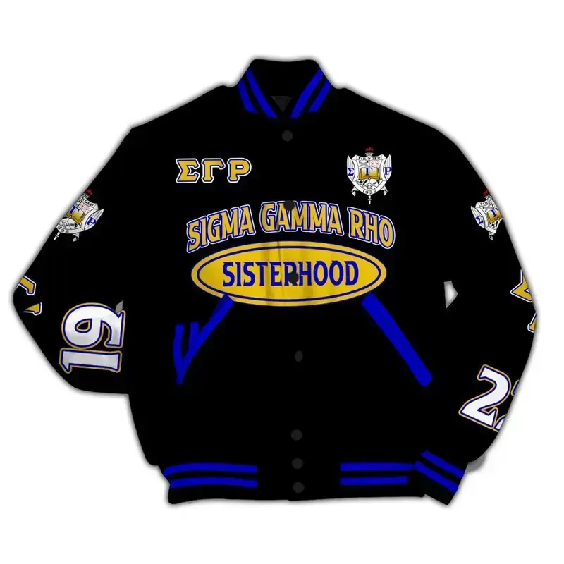 Sigma Gamma Rho Varsity Jacket, Sisterhood Sorority Style Coat, Long Sleeve Button Front, Unisex Casual Streetwear Outfit