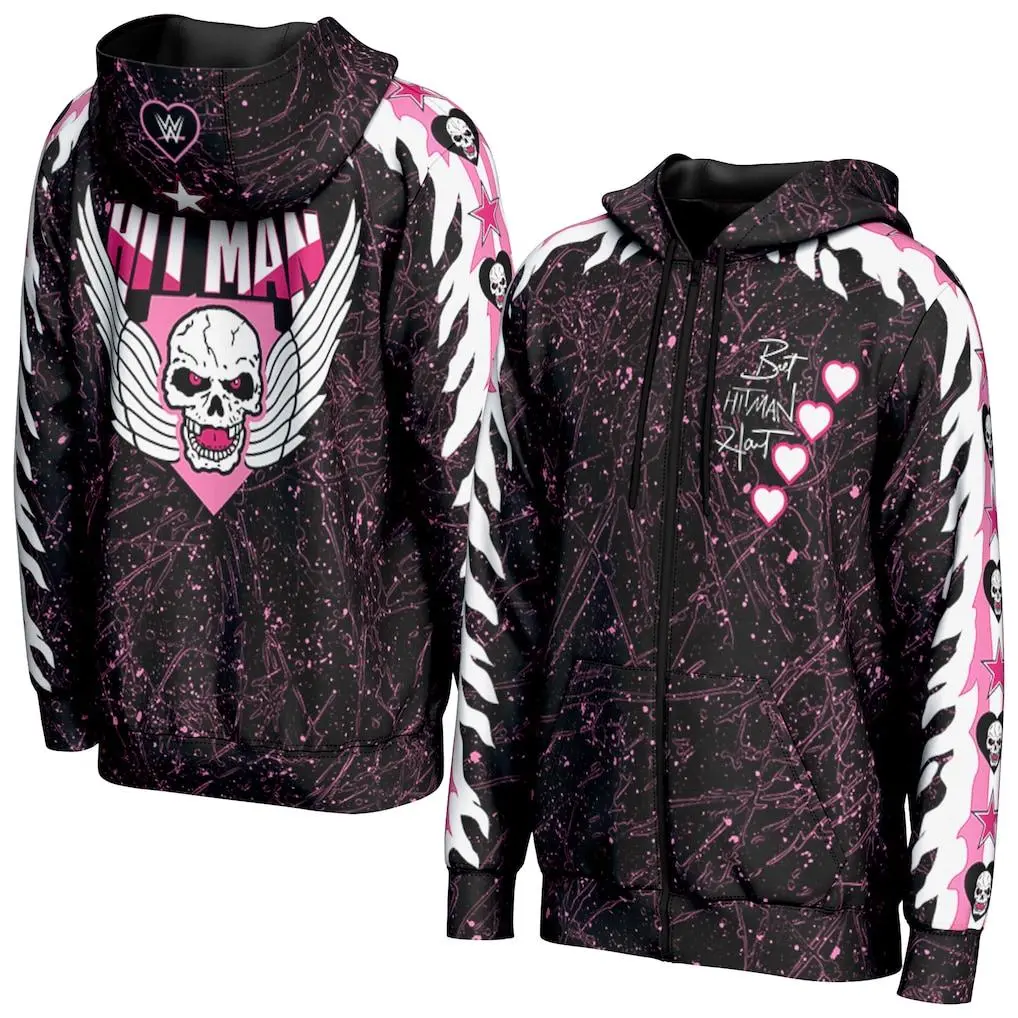 5. Bret Hart Hearts WWE Black Zip Hoodie, Vintage Hitman Legacy Style, Iconic Pink Black Era Design, Excellence of Execution Jacket, Wrestling Fan Gift