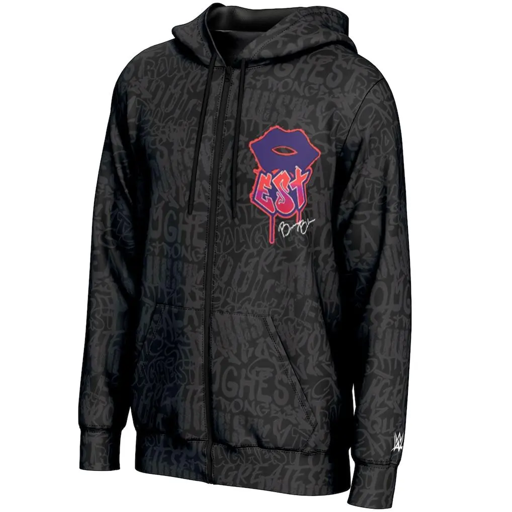 5. Bianca Belair Graffiti WWE Black Zip Hoodie, EST Champion Energy Jacket, Bold Color Graphic Streetwear, Braid Girl Power Style, KOD Wrestling Outfit