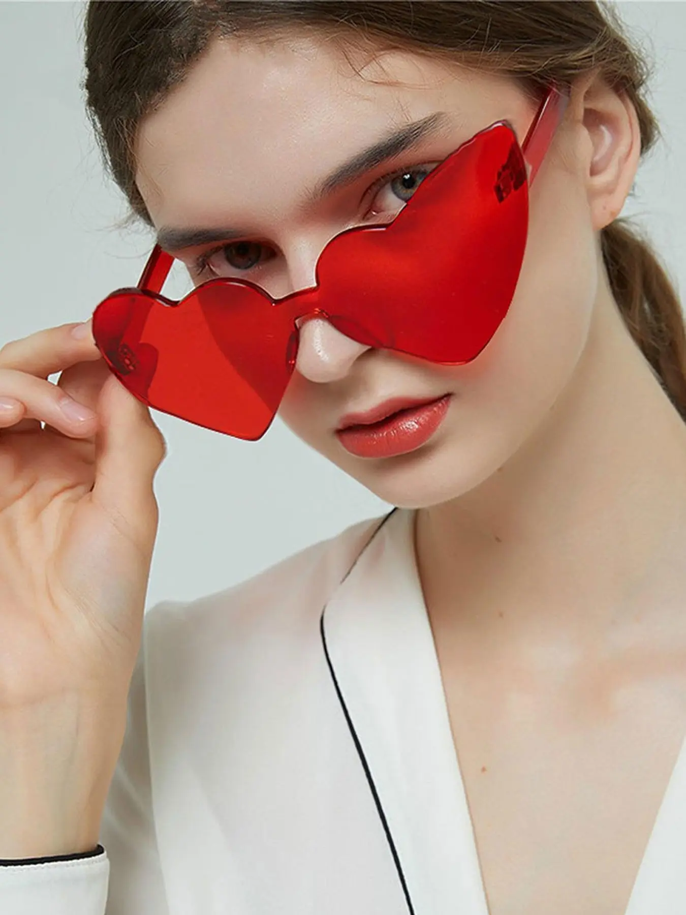 Women's Heart-Shaped Fashion Glasses, Colorful Valentine's Day Sunglasses, Perfect for Beach, Travel, Daily Wear, Elegant Style