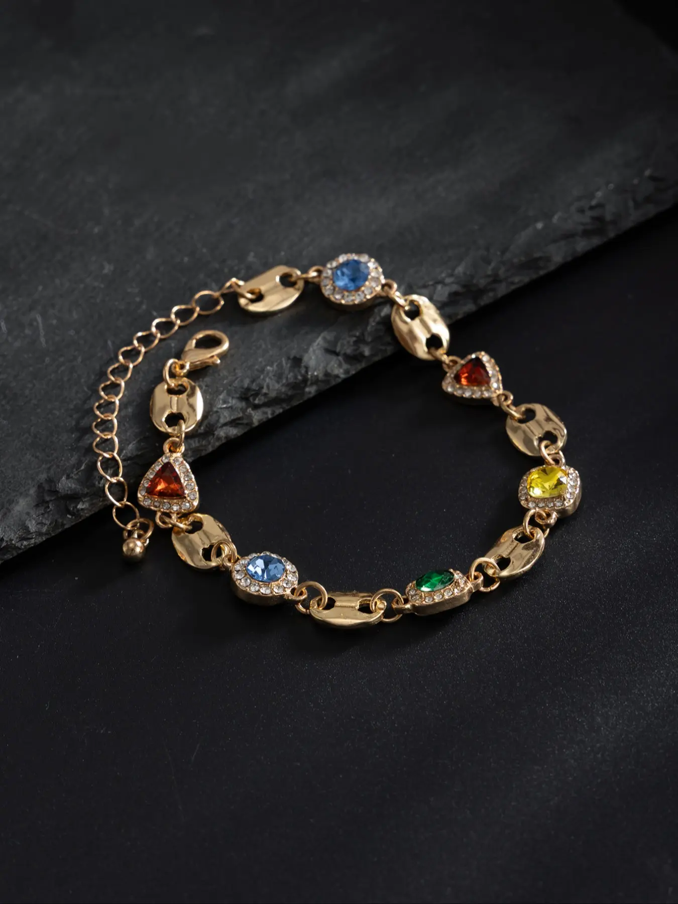 【Vibrant colors】: This hand bracelet showcases an array of colorful gemstones, adding an eye-catching feature to any outfit.