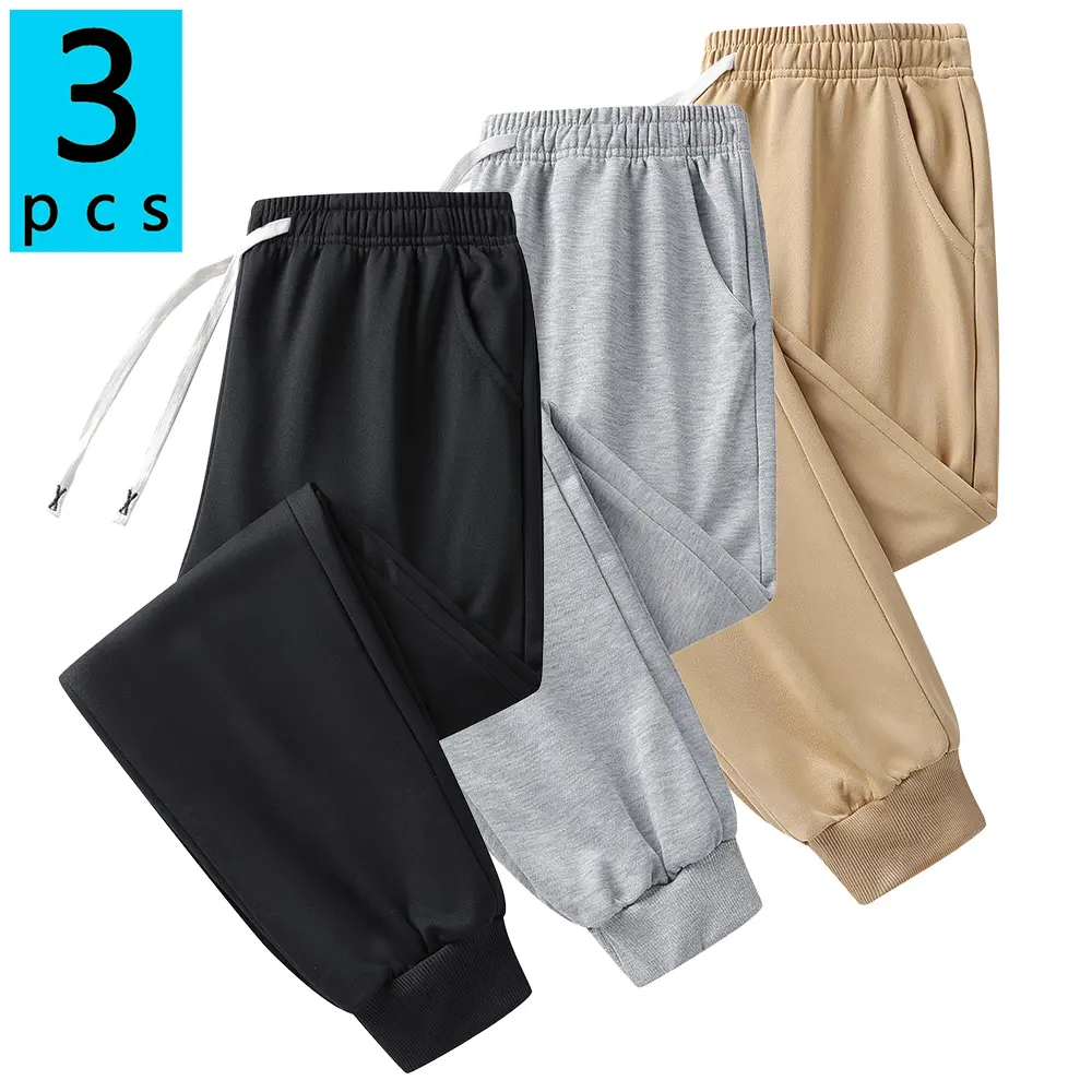 Pack of 3 men’s new casual athletic pants for all seasons—fitness/running joggers, solid-color outdoor jogger pants with cuffs—suitable for everyday wear and workouts in spring and autumn. streetwear comfy