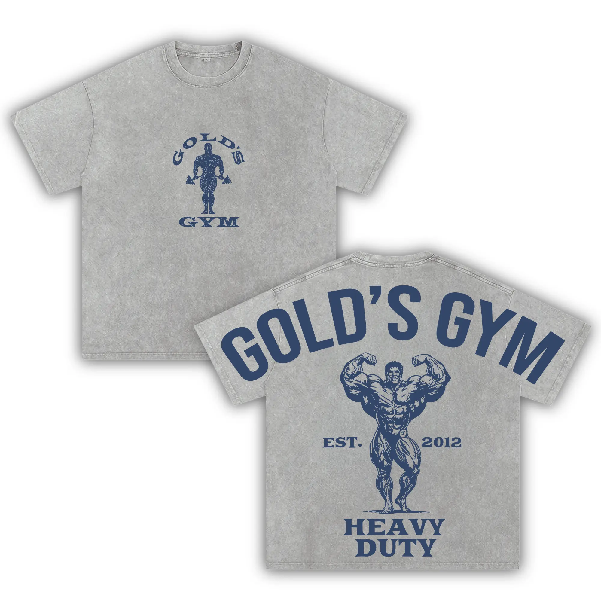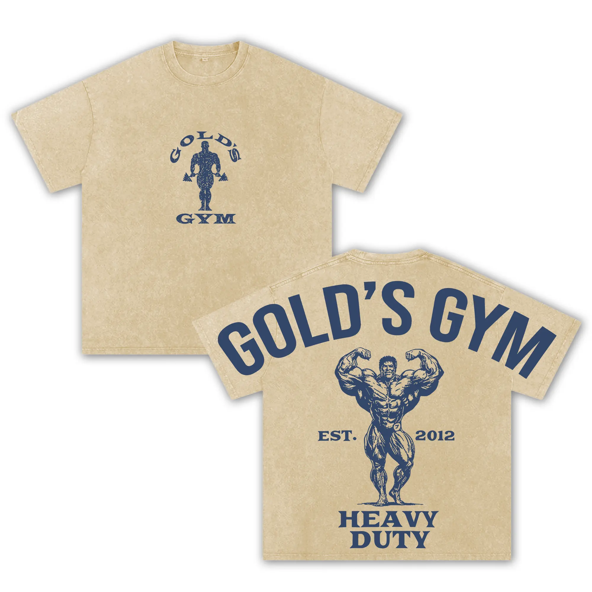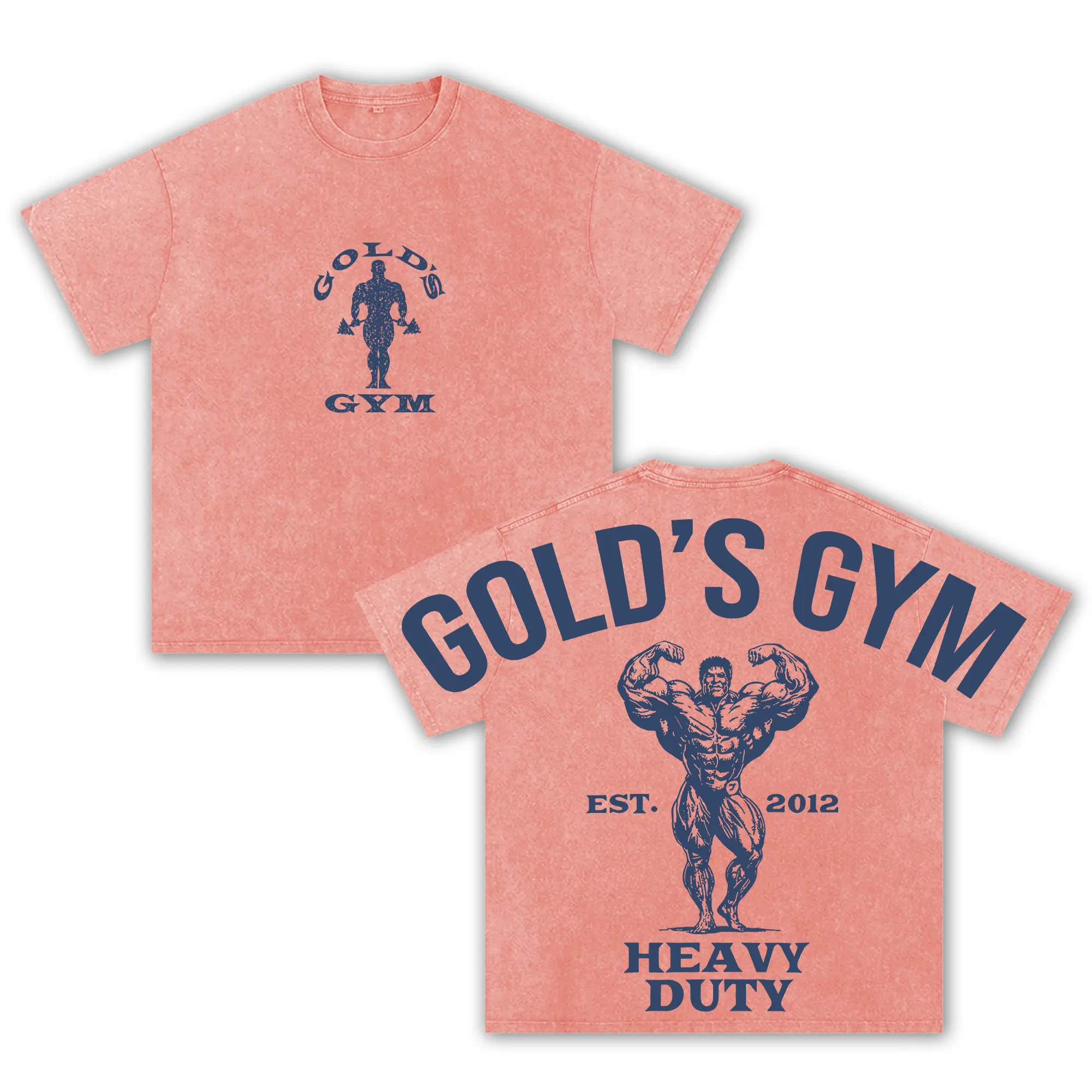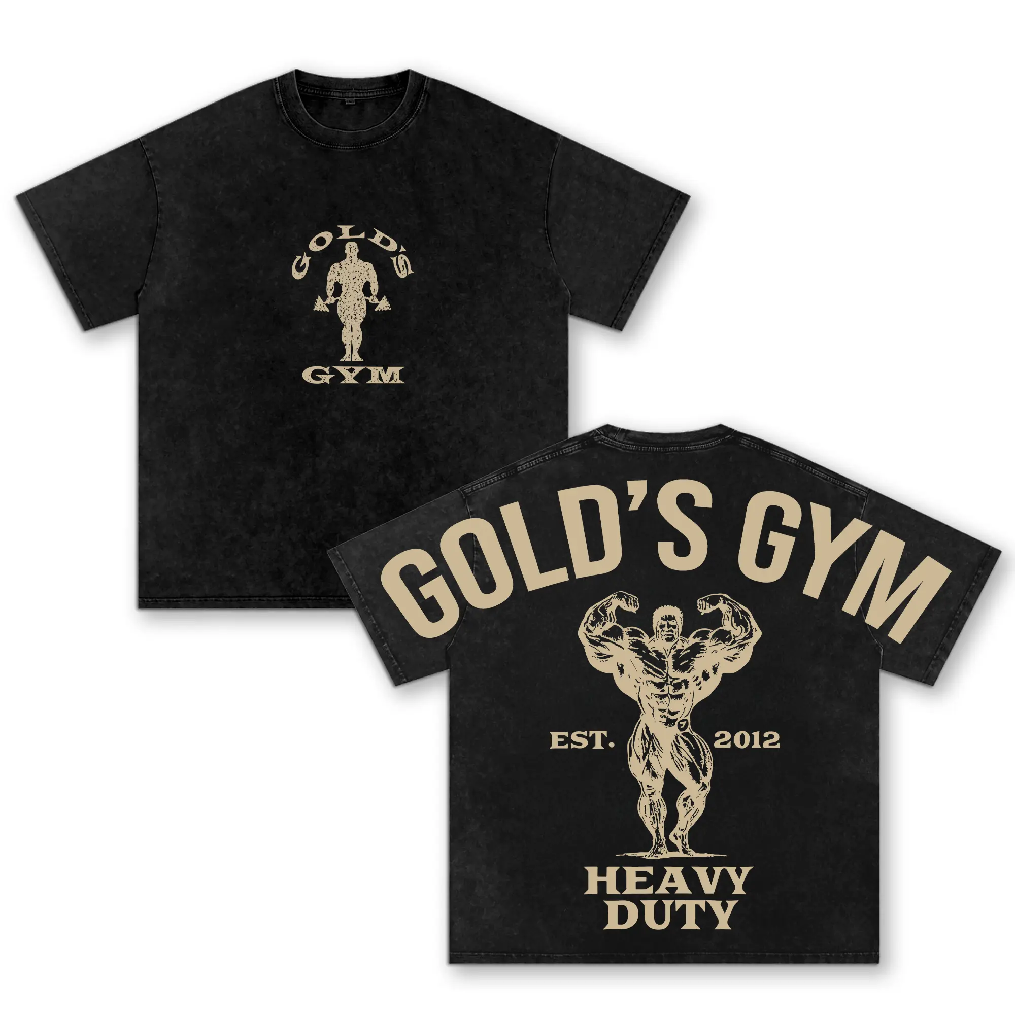 Heavy Duty Gold’s Gym Vintage Washed Oversized Workout T-Shirt – Bodybuilding Pump Cover Graphic Tee, Heavyweight Cotton Muscle Training Shirt, Body Fitness Streetwear Summer Outfit Gift Shirt for Gym Lovers .
