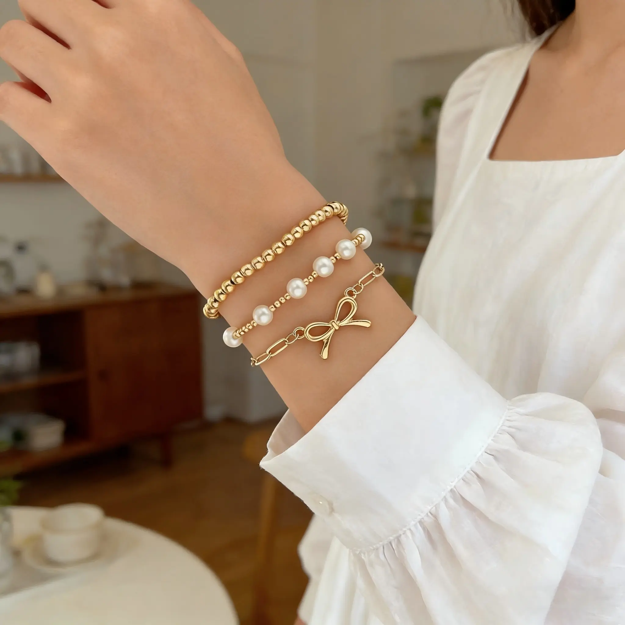 This 3-piece faux pearl & butterfly beaded bracelet set is adjustable, fitting most women’s wrist sizes comfortably. Perfect for parties, dates, daily wear, weddings, and holidays. It complements dresses, T-shirts, sweaters, and casual outfits.