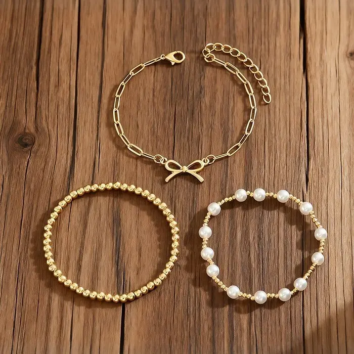 KC 3-Piece Elegant Faux Pearl Bracelet Set