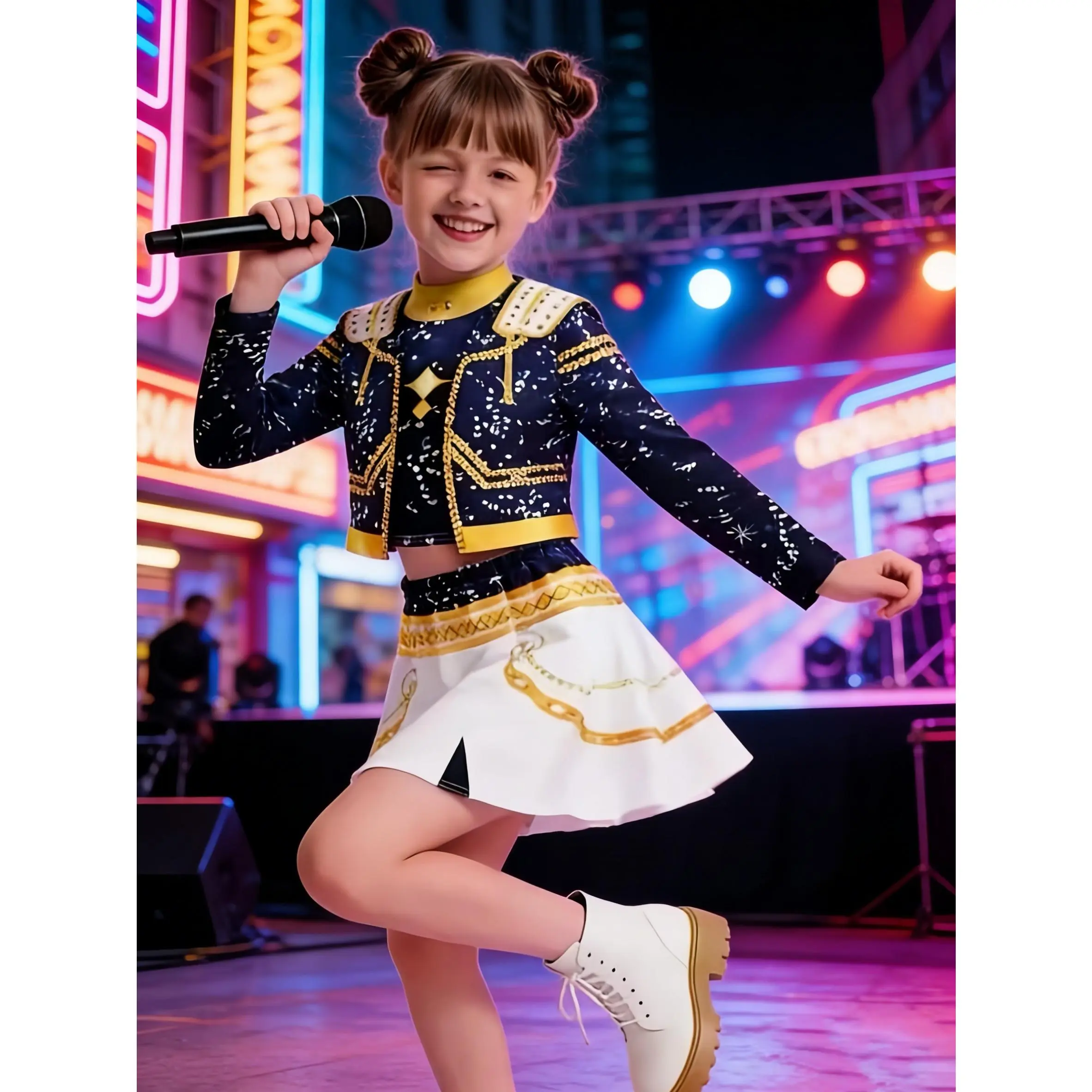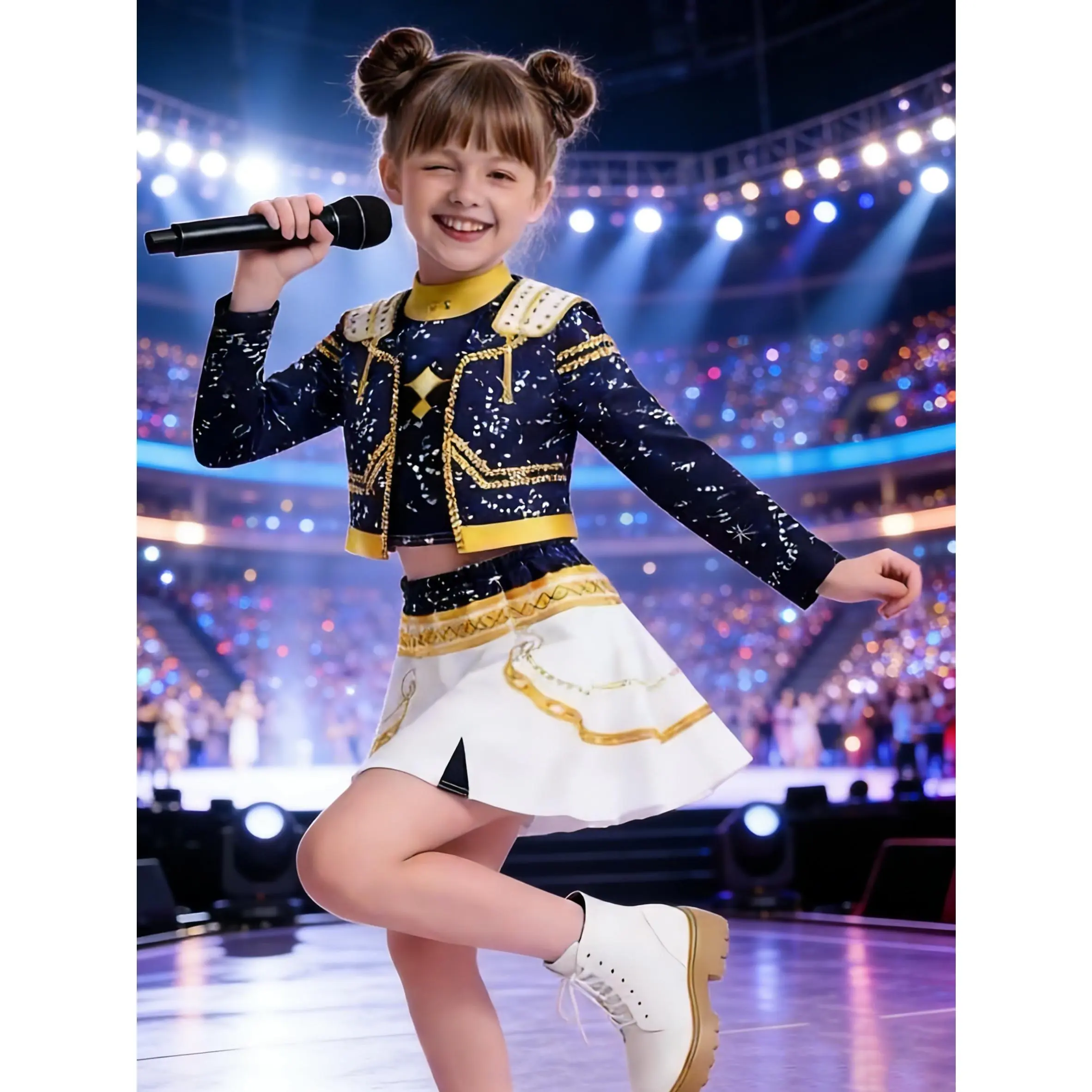 3-piece Kpop outfit, suitable for boys and girls, children's Kpop performance costume, vocal stage costume, idol singer white party girl group stage costume, Halloween festival costume, cheerleader dance uniform