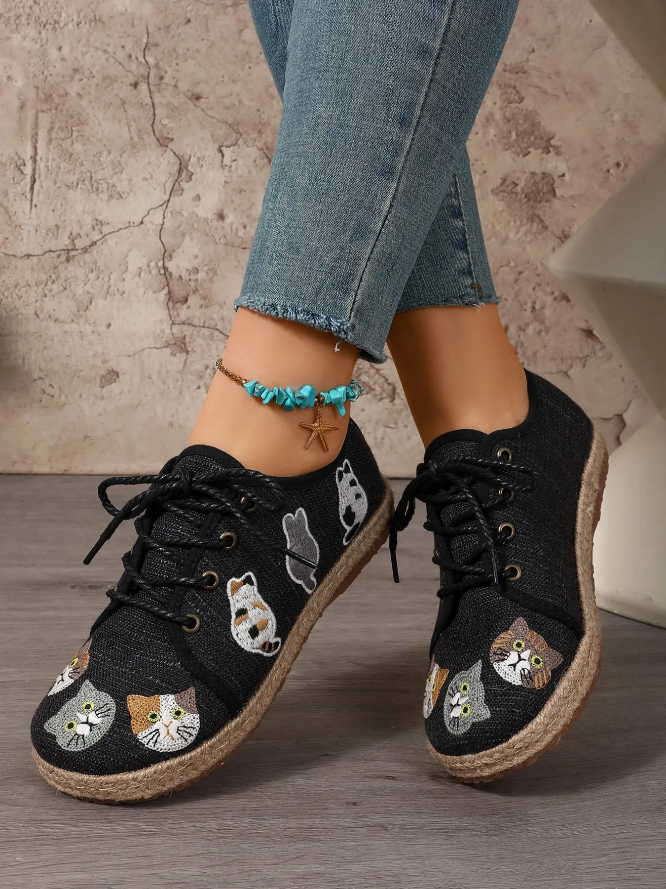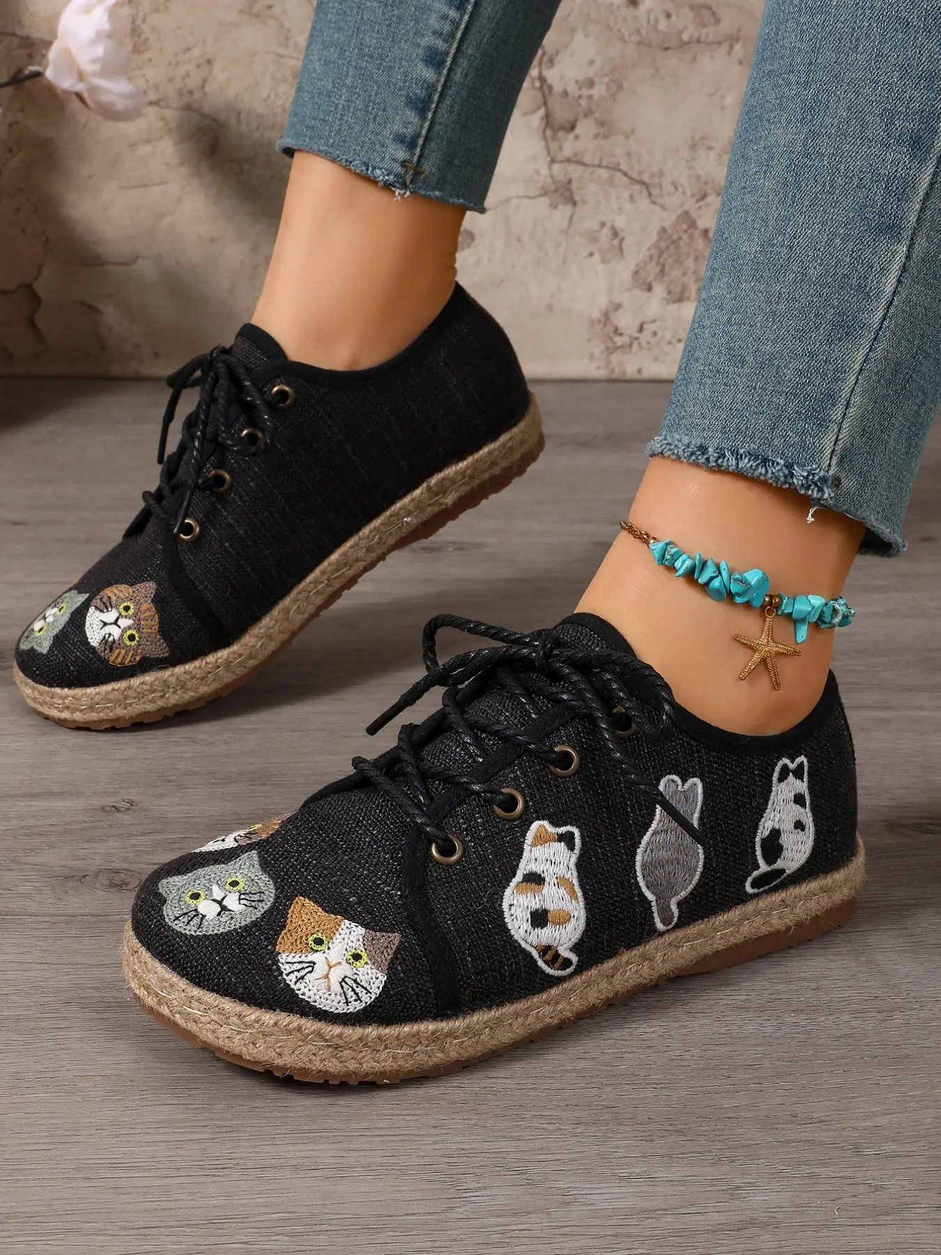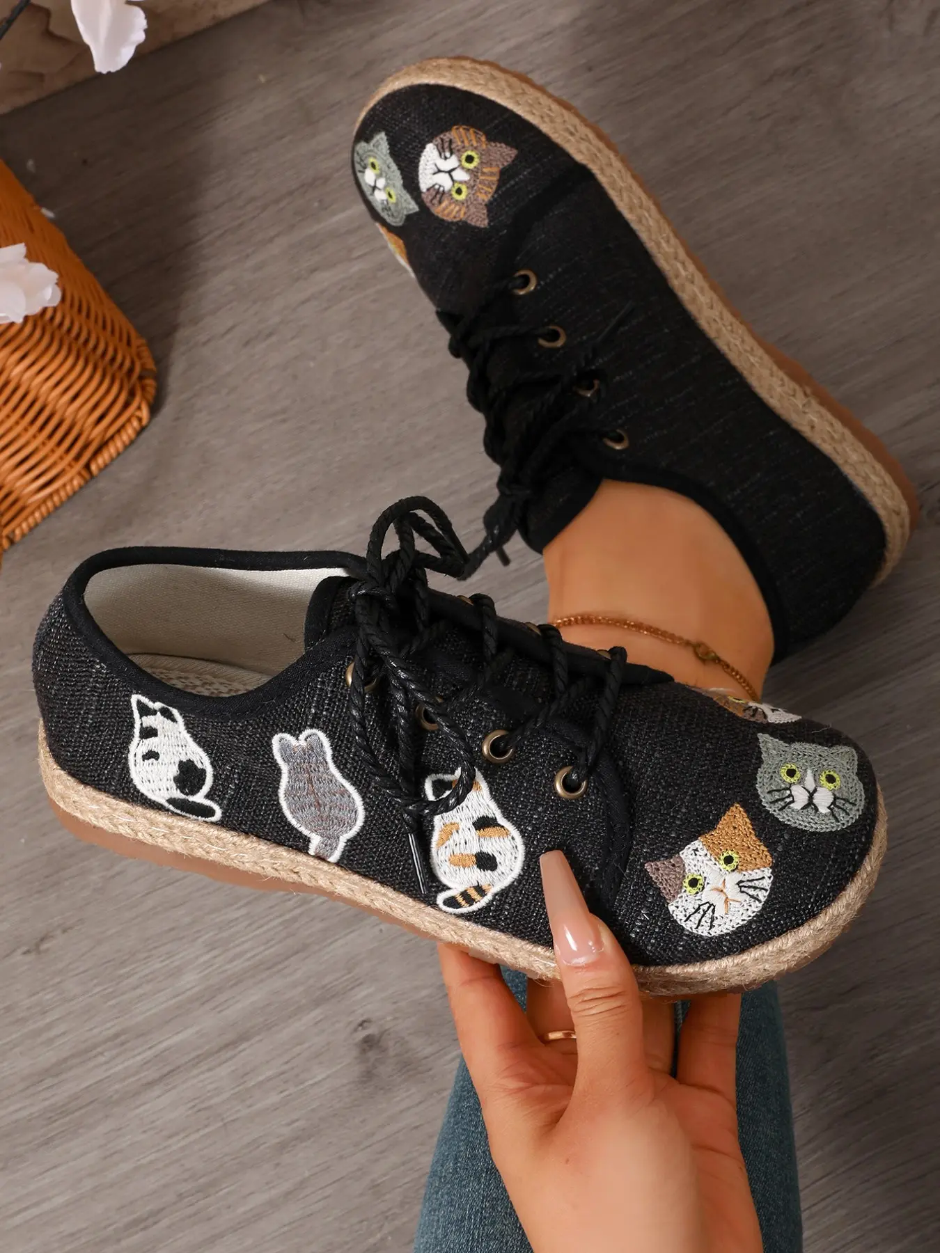 【Cute Cat Embroidery】: Features adorable cat embroidery, adding a playful touch to your everyday footwear.